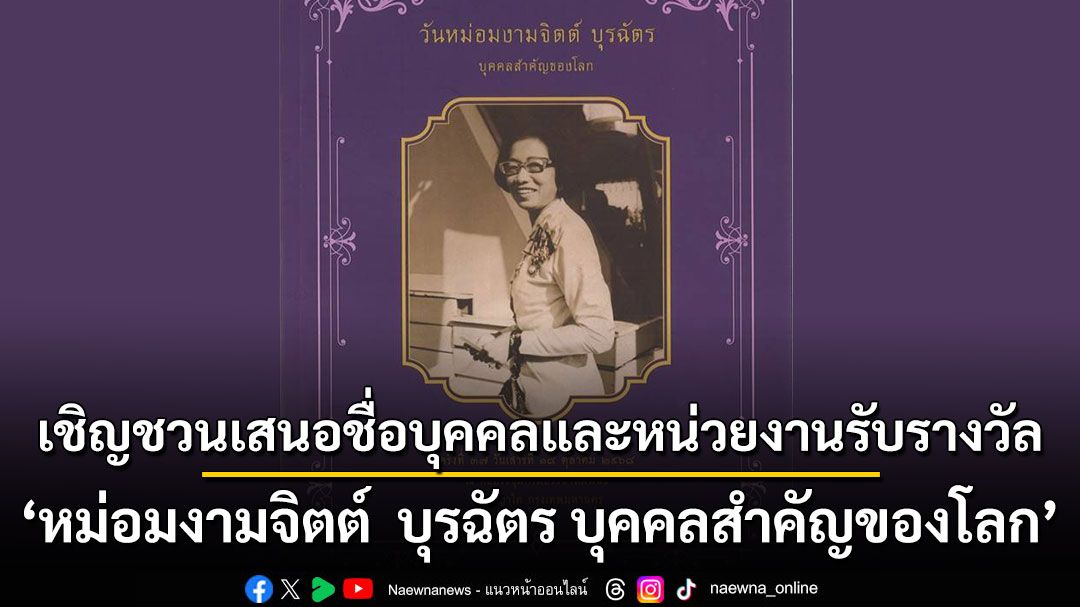 ทั้งนี้ ขอเชิญสถาบันการศึกษาที่มีการสอนระดับอุดมศึกษาทั่วประเทศพิจารณาเสนออาจารย์ที่มีผลงานชัดเจนเกี่ยวกับการพัฒนาศีลธรรม คุณธรรม และจริยธรรม และการครองตนที่ถือเป็นแบบอย่างที่ดีของนิสิต นักศึกษา ภายในวันที่ 19 มิถุนายน 2569 และขอเชิญหน่วยงานที่เกี่ยวข้องเสนอคนพิการเข้ารับการคัดเลือกเพื่อรับรางวัล “หม่อมงามจิตต์ บุรฉัตร บุคคลสำคัญของโลก” ประจำปี 2569 นี้ ได้ที่ผู้ว่าราชการจังหวัดต่าง ๆ หน่วยงาน สมาคม มูลนิธิ ที่เกี่ยวข้อง ภายในวันที่ 29 พฤษภาคม 2569 หรือที่มูลนิธิอนุสรณ์หม่อมงามจิตต์ บุรฉัตร ในพระราชูปถัมภ์ ฯ ตึกมหิดล ชั้น 4 ถนนราชวิถี เขตราชเทวี กทม.10400 หรือ E-mail : princessngarmchit@gmail.com ข้อมูลและคุณสมบัติต่างๆโปรดเปิดดูได้ที่ www. princessngarmchit.org หรือสอบถามได้ที่มูลนิธิฯ ไลน์ไอดี 080-4042439 หรือโทรศัพท์ 02-3547391-4 สำหรับการคัดเลือก บุคคลดีเด่นสาขาอาชีพอื่นๆ หน่วยงานที่เกี่ยวข้องจะพิจารณาเสนอเข้า รับรางวัลโดยตรง
