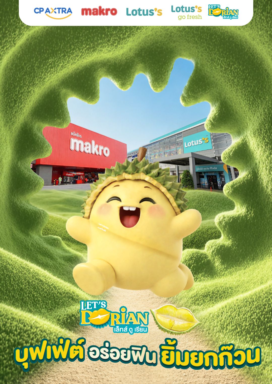 “แม็คโคร–โลตัส” ภายใต้ บริษัท ซีพี แอ็กซ์ตร้า จำกัด (มหาชน) สนับสนุนเกษตกรไทย ร่วมต้อนรับเทศกาลผลไม้ฤดูร้อน จัดงาน “Let’s Dorian อร่อย หวานมัน ไม่ต้องลุ้น” เสิร์ฟบุฟเฟ่ต์ทุเรียนและผลไม้ภาคตะวันออกส่งตรงจากสวนโดยเกษตรกรมาให้เลือกทานแบบไม่อั้น พร้อมบริการ เคาะ เจาะ ชั่ง ปอก รับประกันความอร่อย หวานมันทุกชิ้นแบบไม่ต้องลุ้น เริ่มต้นที่ โลตัส บางนา ระหว่างวันที่ 23-26 เมษายน 2569 ในราคา 599 บาท / 1 คน สามารถร่วมกิจรรมบุฟเฟ่ต์ทุเรียนได้ 1 ชม. พร้อมรับสิทธิ์หมุนฟรีวงล้อลุ้นรางวัลจากโลตัส 1 ครั้ง