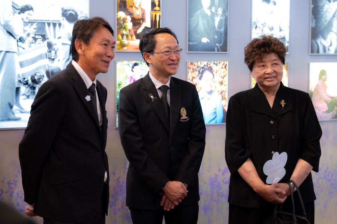 ในการนี้ ศ.(พิเศษ) ดร.สุรเกียรติ์ เสถียรไทย นายกสภาจุฬาลงกรณ์มหาวิทยาลัย ได้กล่าวสำนึก ในพระมหากรุณาธิคุณ และวางพวงมาลัยบนพานหน้าพระรูปสมเด็จพระพันปีหลวง วงจุฬาฯ เชมเบอร์บรรเลงเพลงสรรเสริญพระบารมี จากนั้น นายกสภาจุฬาลงกรณ์มหาวิทยาลัย พร้อมด้วยกรรมการสภามหาวิทยาลัย และผู้บริหารมหาวิทยาลัยถ่ายภาพร่วมกัน เสร็จแล้วนายกสภาจุฬาลงกรณ์มหาวิทยาลัยจึงตัดริบบิ้นเปิดนิทรรศการ และเข้าชมนิทรรศการ