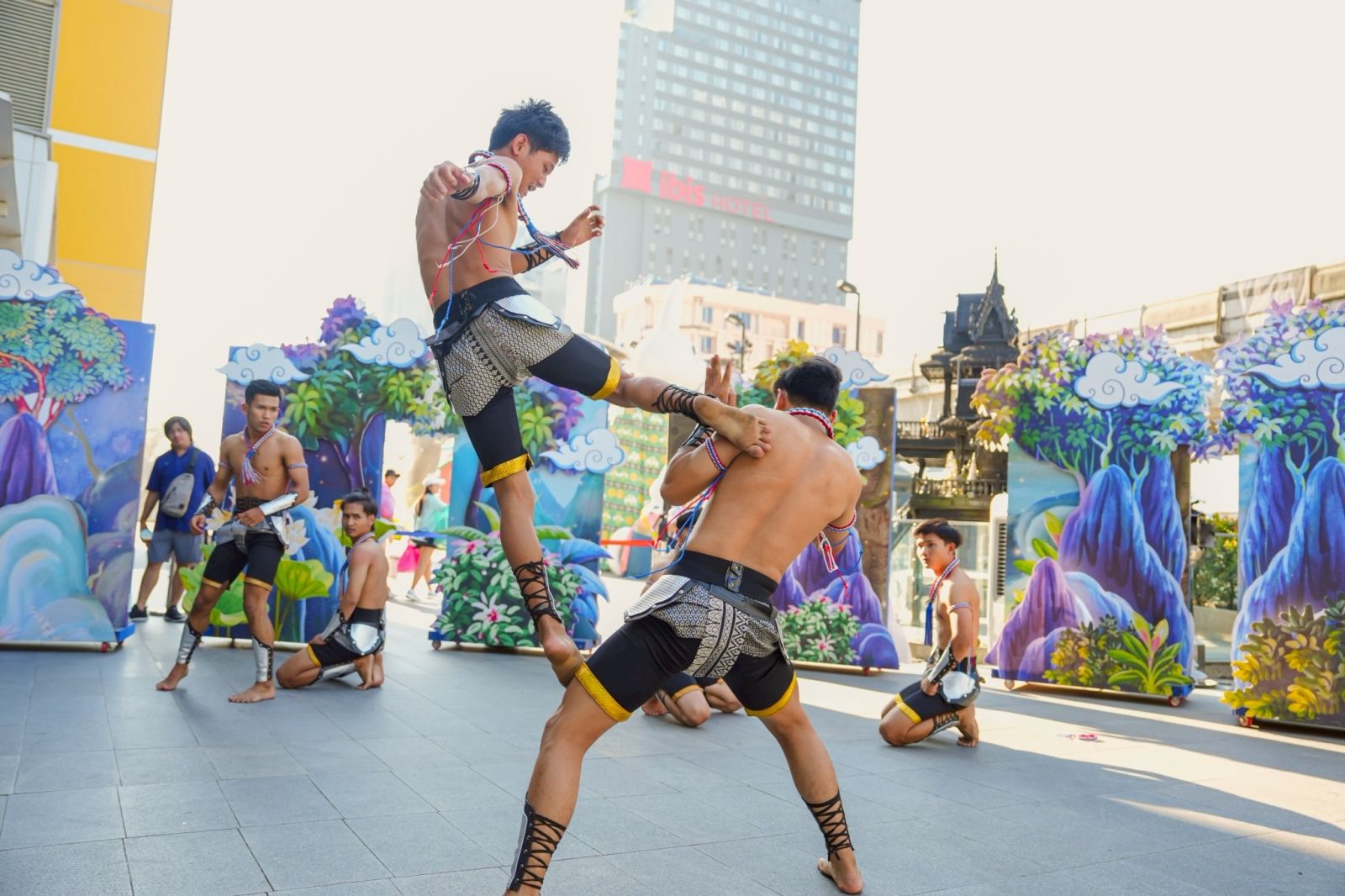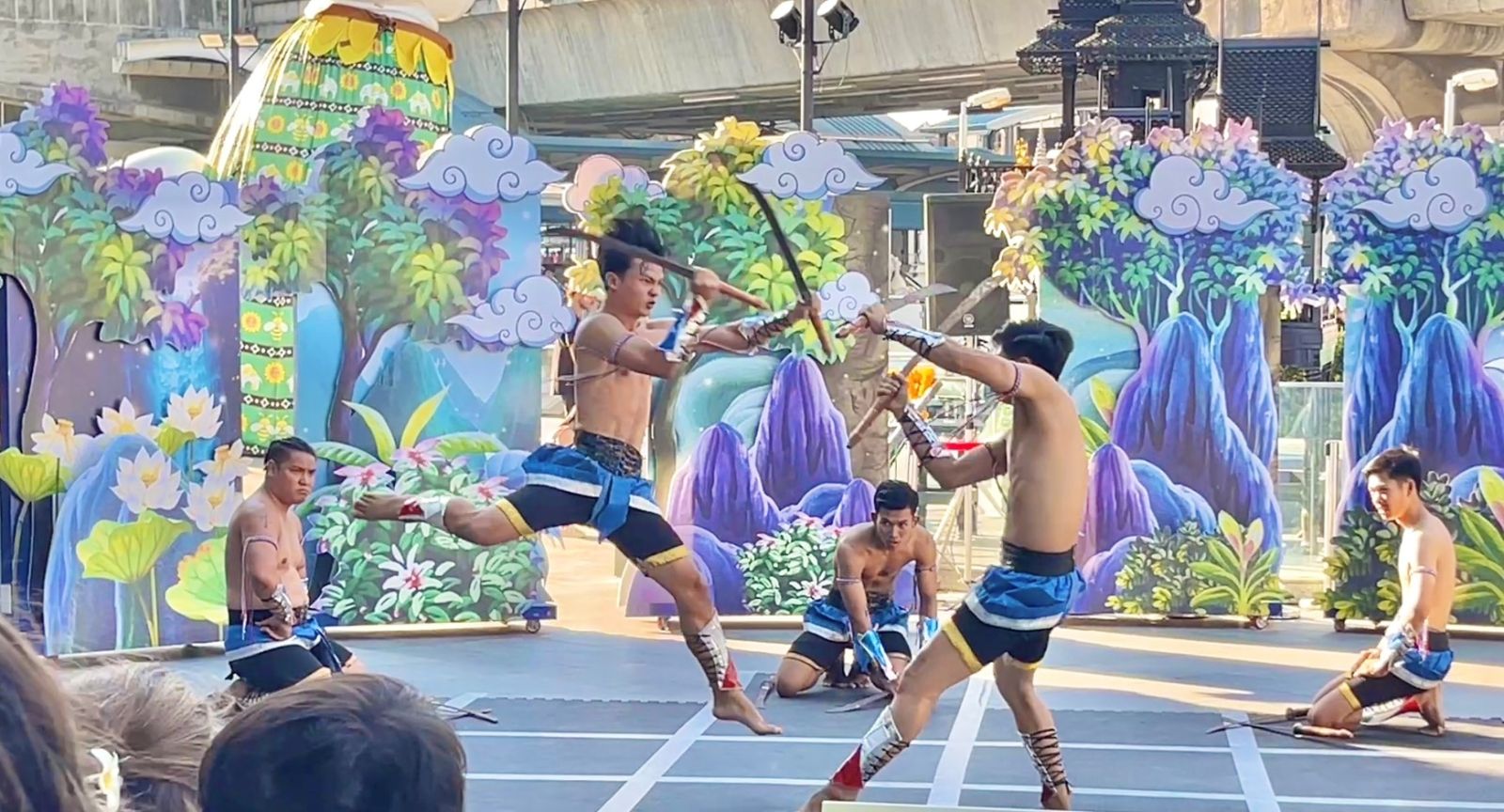 อีกหนึ่งการแสดงที่เรียกเสียงฮือฮา คือ “ศิลปะป้องกันตัวมวยไทย และ การต่อสู้มวยไทยแบบโบราณ” ที่ถ่ายทอดลีลาอันทรงพลังของแม่ไม้มวยไทย รวมถึง การต่อสู้ด้วยอาวุธดาบไทย ทั้งความแข็งแกร่ง ความงดงาม และ จังหวะที่เป็นเอกลักษณ์ สร้างความตื่นตาตื่นใจให้กับนักท่องเที่ยวจากทั่วโลก