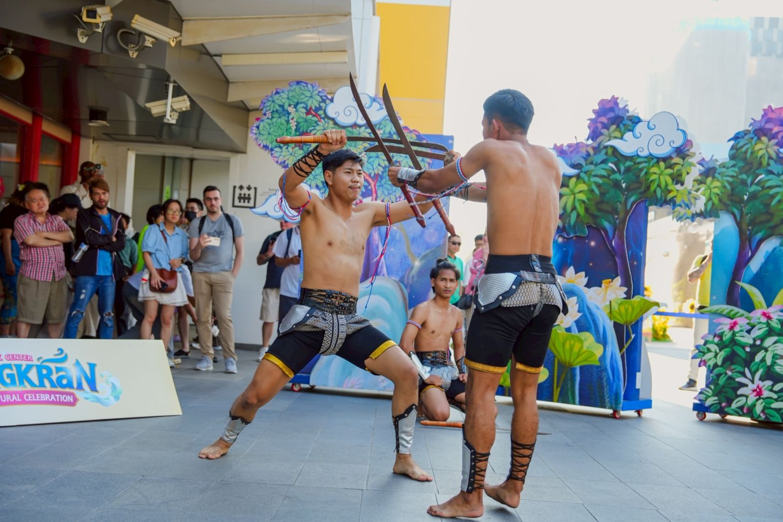 ตลอดช่วงเทศกาลสงกรานต์ที่ผ่านมา บริเวณลาน SkyWalk ด้านหน้าเอ็ม บี เค เซ็นเตอร์ จึงกลายเป็นพื้นที่รวมเสน่ห์ความเป็นไทยไว้อย่างครบครัน โดยเฉพาะการแสดงศิลปวัฒนธรรมไทยที่หาชมได้ยาก ซึ่งทั้งลูกค้าคนไทยและนักท่องเที่ยวต่างชาติให้ความสนใจร่วมชมอย่างคึกคัก พร้อมเก็บภาพความประทับใจกับนักแสดงอย่างใกล้ชิด