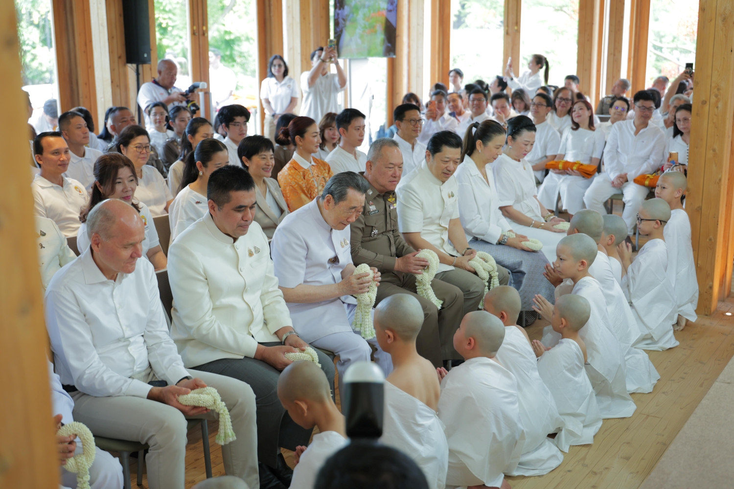 ในโอกาสนี้ นายธนินท์ เจียรวนนท์ ประธานอาวุโส เครือเจริญโภคภัณฑ์ ในฐานะประธานฝ่ายฆราวาสและโยมอุปถัมภ์ โครงการสามเณร ปลูกปัญญาธรรม นายอนุพงศ์ สุขสมนิตย์ ผู้ว่าราชการจังหวัดนครราชสีมา พล.ต.ท.พฤทธิพงษ์ ประยูรศิริ ผู้บัญชาการตำรวจภูธรภาค 3 ดร.อาจอง ชุมสาย ณ อยุธยา ที่ปรึกษาโครงการฝ่ายฆราวาส นายศุภชัย เจียรวนนท์ รองประธานอาวุโส เครือเจริญโภคภัณฑ์ / ประธานกรรมการ บมจ. ทรู คอร์ปอเรชั่น และผู้ริเริ่มโครงการสามเณร ปลูกปัญญาธรรม รวมถึง นายซิกเว่ เบรกเก้ ประธานคณะผู้บริหารกลุ่ม บมจ. ทรู คอร์ปอเรชั่น พร้อมด้วยคณะผู้บริหารเครือเจริญโภคภัณฑ์ และบมจ. ทรู คอร์ปอเรชั่น ร่วมอนุโมทนาบุญและส่งกำลังใจแก่สามเณรทั้ง 12 รูป ในการเริ่มต้นบทเรียนชีวิตบนวิถีแห่งธรรมอย่างงดงาม