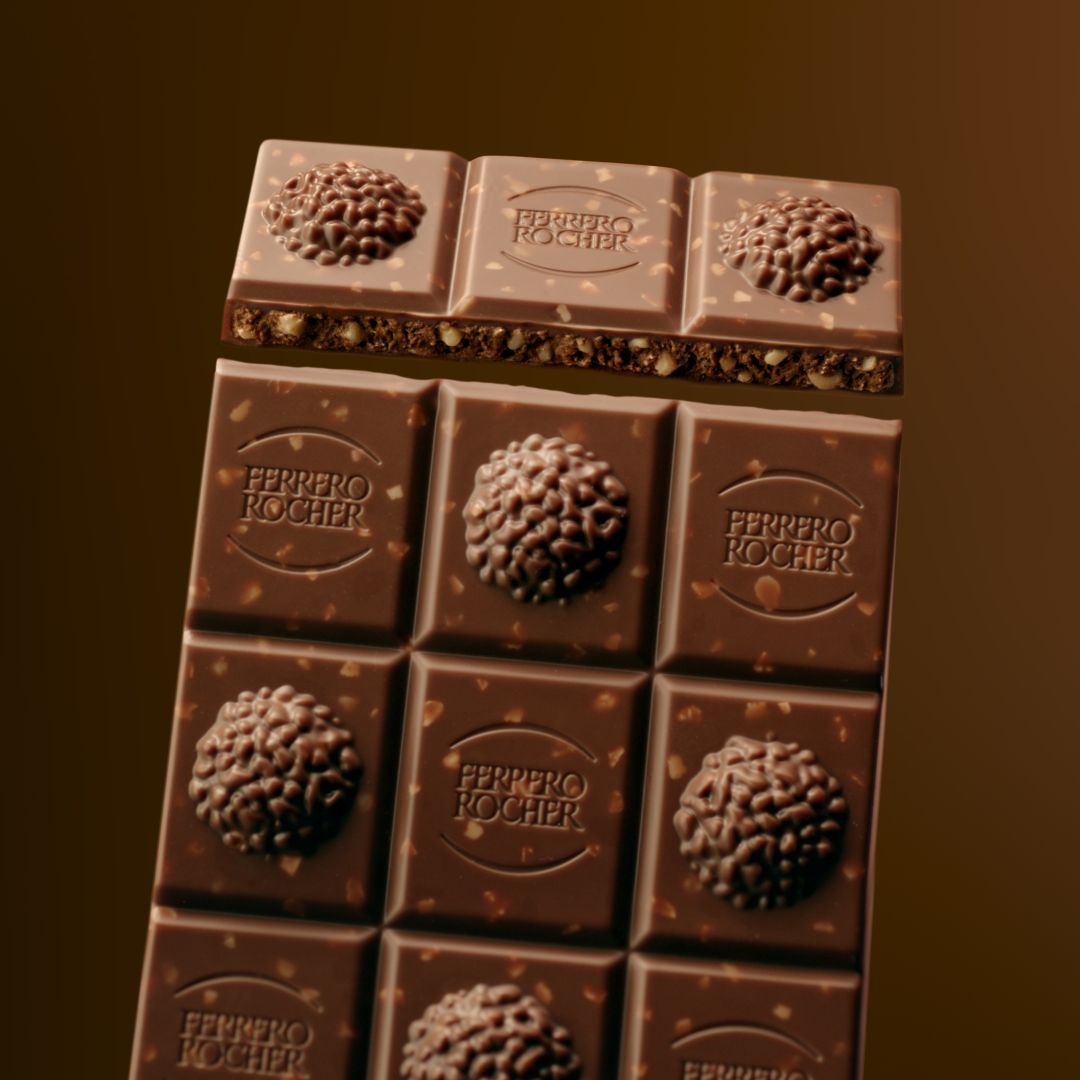 ช็อกโกแลตแต่ละชิ้นถูกรังสรรค์อย่างพิถีพิถัน เพื่อมอบประสบการณ์ความดื่มด่ำที่เหนือระดับในทุกสัมผัส พร้อมเผยรูปทรงอันเป็นเอกลักษณ์ในรูปแบบใหม่ของ Ferrero Rocher Chocolate Bars ที่จะนำพาคุณการเดินทางไปสู่ประสบการณ์สีทองอันล้ำค่า