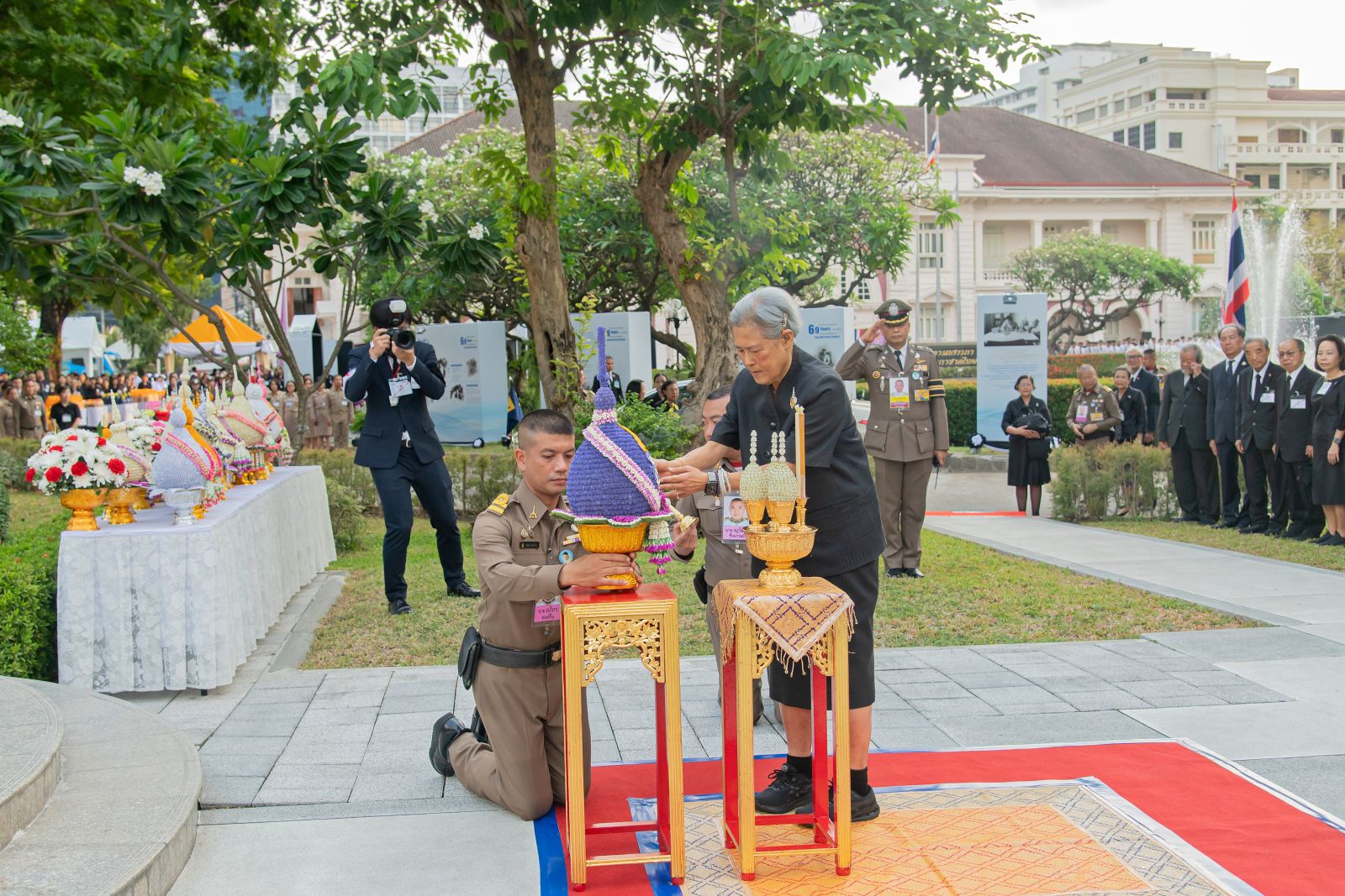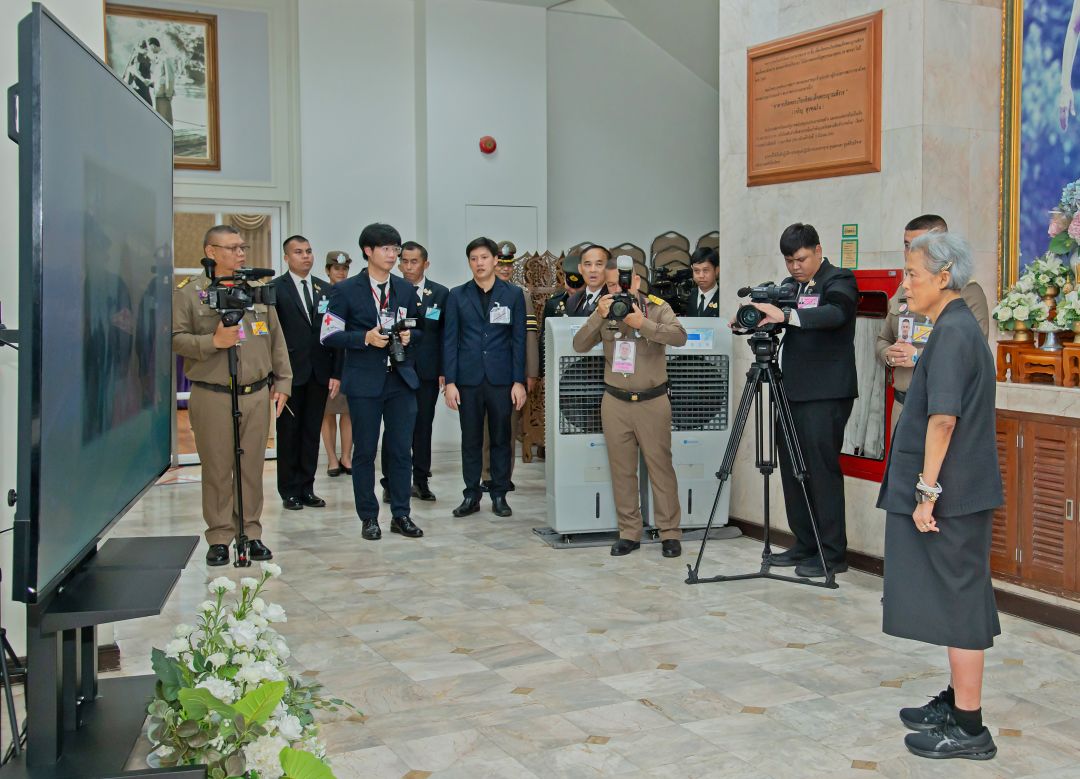 จากนั้นเสด็จพระราชดำเนินไปยังอาคารเทิดพระเกียรติสมเด็จพระญาณสังวร (เจริญ สุวฑฺฒโน) พระราชทานพระราชวโรกาสให้ เตช บุนนาค เลขาธิการสภากาชาดไทย เฝ้าทูลละอองพระบาท ทูลเกล้าทูลกระหม่อมถวายของที่ระลึก จากนั้นทรงทอดพระเนตรวีดิทัศน์ “ใต้ร่มพระบารมี 69 ปี องค์สภานายิกาสภากาชาดไทย” เพื่อน้อมรำลึกถึงพระมหากรุณาธิคุณในพระราชกรณียกิจตลอดระยะเวลา 69 ปี ของสมเด็จพระนางเจ้าสิริกิติ์ พระบรมราชินีนาถ พระบรมราชชนนีพันปีหลวง ที่ทรงดำรงตำแหน่งสภานายิกาสภากาชาดไทย