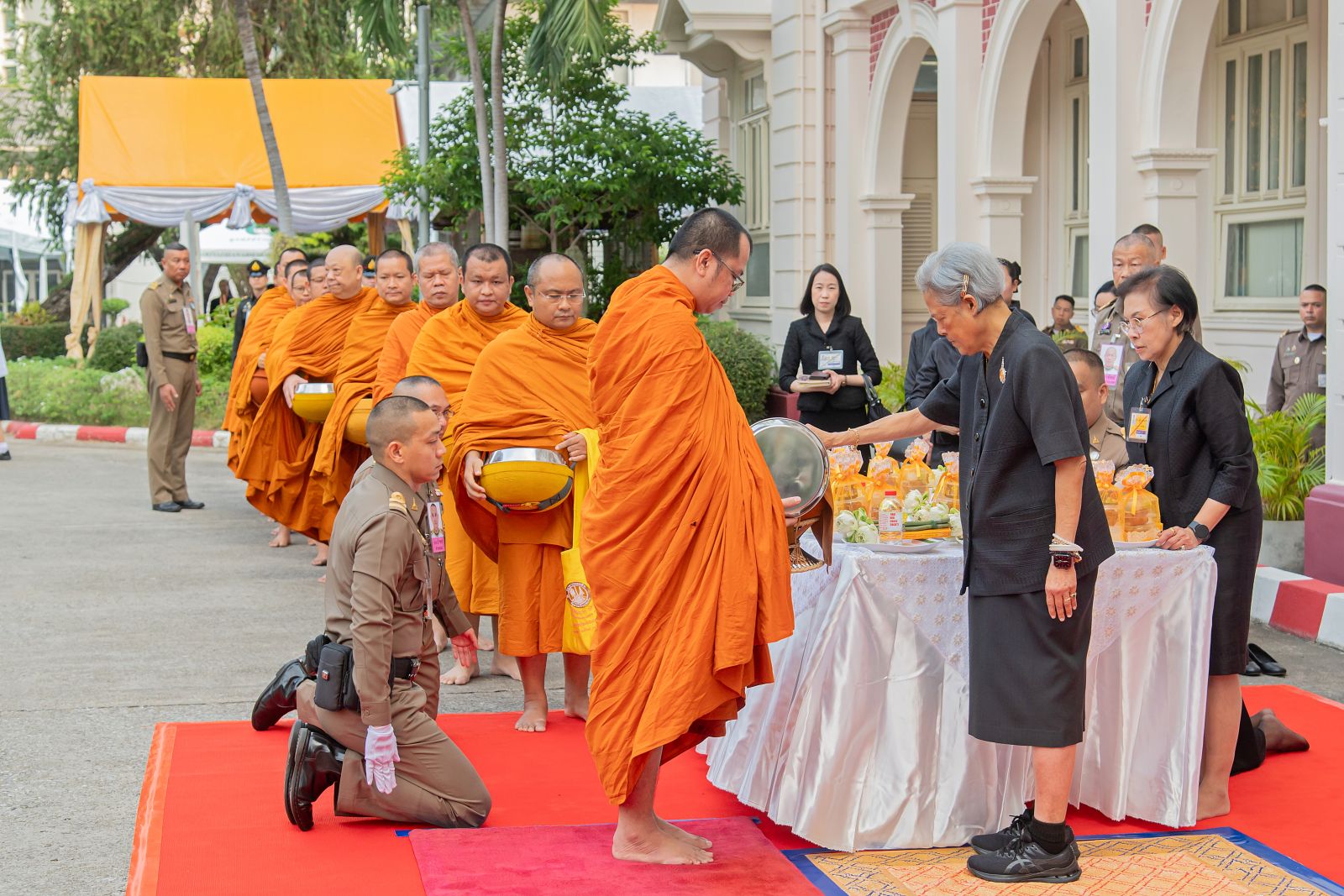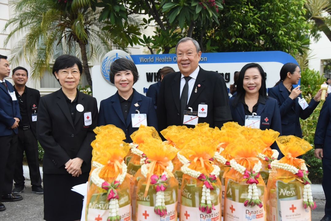 โอกาสนี้ สมเด็จพระกนิษฐาธิราชเจ้า กรมสมเด็จพระเทพรัตนราชสุดา ฯ สยามบรมราชกุมารี อุปนายิกาผู้อำนวยการสภากาชาดไทย พระราชทานพระราโชวาทแก่คณะผู้บริหารและบุคลากรของสภากาชาดไทย เพื่อความเป็นสิริมงคลและเป็นขวัญกำลังใจในการปฏิบัติหน้าที่ ความว่า “วันนี้เป็นวันที่เราจัดกันมาเป็นประจำ ทุกๆ ฝ่ายที่เกี่ยวข้องกับสภากาชาดไทยก็มาร่วมกันทำบุญ พบปะกัน ในช่วงนี้ผู้ทำงานเกี่ยวข้องกับสภากาชาดเห็นจะต้องทำงานตามหลักสภากาชาดมากกว่าปกติ เพราะตอนนี้มีเรื่องต่างๆ ที่เรารู้ และเรื่องเกี่ยวกับภัยธรรมชาติต่างๆ นานา ที่เรามีวิธีการมีเรื่องสมัยใหม่มีแอพ ที่ช่วยการทำงานได้ไม่มากก็น้อย เห็นทั้งผู้ที่อยู่ในส่วนกลาง ส่วนภูมิภาคต่างๆ ทำงานกันอย่างแข็งขัน ตอนนี้ก็ตระเวนไปดูตามจังหวัดต่างๆ การทำงานมีหลักอยู่ว่าเราต้องร่วมกันและช่วยตัวเอง ตอนนี้ยากที่จะให้ใครที่อื่นมาช่วยเหลือถ้าไม่ใช่คนไทยด้วยกัน เพราะแต่ละคนแต่ละฝ่ายก็มีปัญหากันอยู่ในประเทศเขาด้วยกันทั้งสิ้น เท่าที่เห็นน่าชื่นชมคนไทยทุกคนรวมถึงสภากาชาดไทยเป็นผู้นำ ปีนี้ทำงานที่สภากาชาดมาครบ 50 ปี ได้เห็นอะไรๆ มามาก มีสิ่งที่ทำกันต่อเนื่องก็คิดว่าจะตั้งใจทำต่อไป อาจจะมีวิธีการใหม่ๆ ทั้งด้านแนวความคิดและเทคโนโลยี ขอให้ทุกท่านมีกำลังใจเข้มแข็งมีสุขภาพอนามัยที่ดี พร้อมด้วยสิ่งดีๆ ทั้งกายและใจ มีสุขสวัสดีทุกเมื่อตลอดไป”