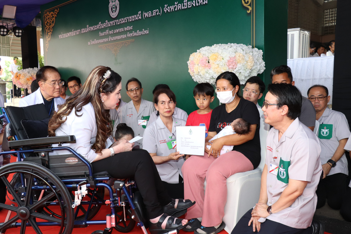 ศาสตราจารย์ ดร.สมเด็จพระเจ้าน้องนางเธอ เจ้าฟ้าจุฬาภรณวลัยลักษณ์ อัครราชกุมารี กรมพระศรีสวางควัฒน วรขัตติยราชนารี เสด็จไปทรงเยี่ยมการปฏิบัติงานของหน่วยแพทย์ พอ.สว. ในพื้นที่ภาคเหนือ ระหว่างวันที่ 20-25 เมษายน 2569 ณ โรงเรียนทุ่งกว๋าววิทยาคม จังหวัดลำปาง วิทยาลัยการอาชีพป่าซาง จังหวัดลำพูน และ โรงเรียนจอมทอง จังหวัดเชียงใหม่ เพื่อทอดพระเนตรการดำเนินงานและพระราชทานขวัญกำลังใจแก่เจ้าหน้าที่ผู้ปฏิบัติงาน รวมถึงประชาชนที่มารับบริการตรวจรักษา สร้างความปลาบปลื้มและสำนึกในพระกรุณาธิคุณอย่างหาที่สุดมิได้ โดยเฉพาะอย่างยิ่ง พระเมตตาที่ทรงมีต่อผู้ป่วยยากไร้ที่ต้องเผชิญกับโรคร้ายแรง จำเป็นต้องดำเนินการรักษาอย่างต่อเนื่องและทันท่วงที อาทิ ผู้ป่วยด้วยโรคหัวใจพิการแต่กำเนิด โรคมะเร็งเยื่อบุช่องท้อง โรคปากแหว่งเพดานโหว่ โรคภาวะสมองพิการ และโรคกระดูกสันหลังคด ทั้งนี้ ทรงมีพระวินิจฉัยร่วมกับแพทย์ผู้ทำการรักษาในการรับผู้ป่วยนำเฝ้า ไว้เป็นคนไข้ในพระอนุเคราะห์ เพื่อเข้ารับการรักษาต่อที่โรงพยาบาลจุฬาภรณ์ และโรงพยาบาลประจำจังหวัดต่อไป
