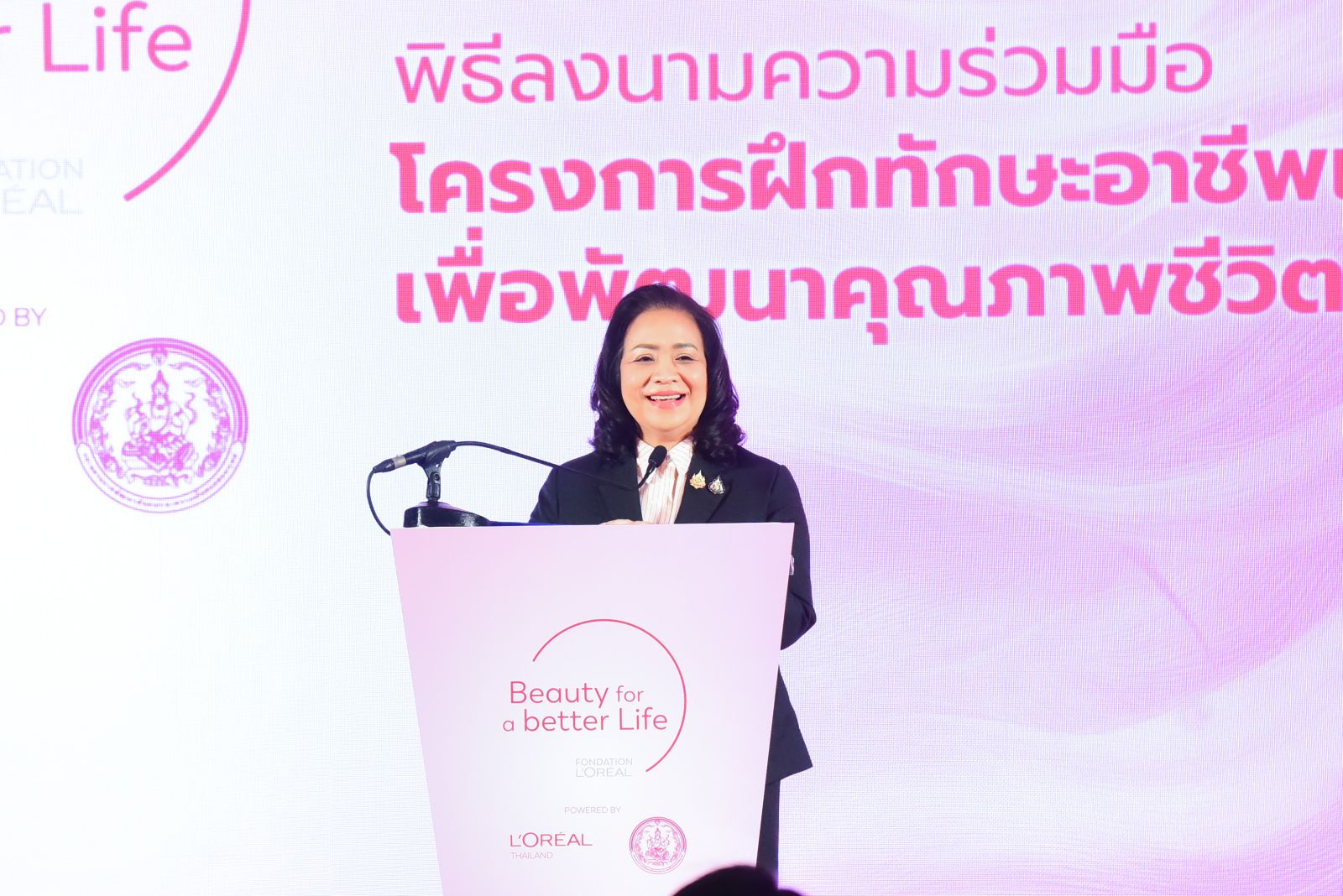 ด้าน อรอนงค์ ประทักษ์พิริยะ ผู้อำนวยการฝ่ายกิจการองค์กรและสื่อสารสัมพันธ์ บริษัท ลอรีอัล (ประเทศไทย) จำกัด กล่าวว่า โครงการ Beauty for a Better Life เป็นหนึ่งในพันธกิจระดับโลกภายใต้มูลนิธิลอรีอัล ซึ่งดำเนินการใน 23 ประเทศทั่วโลก โดยมุ่งใช้ “ความงาม” เป็นเครื่องมือในการสร้างโอกาสและการเปลี่ยนแปลงชีวิต เพื่อลดผลกระทบรุนแรงจากวิกฤตเศรษฐกิจและสังคมที่มีต่อผู้หญิง เราเชื่อว่า “ความงามมีคุณค่า” ไม่ใช่เพียงเรื่องภาพลักษณ์ภายนอก แต่เป็นพลังที่ช่วยสร้างอาชีพ เสริมสร้างความมั่นใจ สามารถสร้างผลกระทบเชิงบวกโดยเปิดโอกาสให้ผู้หญิงยืนหยัดในสังคมได้อย่างเข้มแข็ง ภายใต้โปรแกรมด้านความยั่งยืน “L’Oréal For The Future” ลอรีอัล กรุ๊ป ได้ตั้งเป้าหมายในการช่วยเหลือสตรีและกลุ่มเปราะบางเข้าถึงอาชีพและโอกาสทางเศรษฐกิจ 1 แสนคนทั่วโลกภายในปี 2030 ผ่านโครงการต่างๆ ซึ่งขณะนี้สามารถดำเนินงานได้เกินเป้าหมายแล้ว และโครงการ Beauty for a Better Life นับเป็นโครงการหลักในการทำให้เป้าหมายนี้สำเร็จ และเราจะยังคงเดินหน้าดำเนินงานต่อไปเพื่อขยายโอกาสให้ได้มากที่สุด