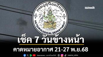 มาแล้ว! กรมอุตุฯคาดหมายอากาศ 7 วันข้างหน้า ตั้งแต่ 21-27 พ.ย.68