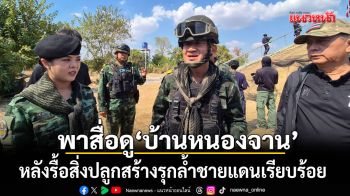 เปิดภาพล่าสุด! กองทัพบกพาสื่อลงพื้นที่ บ้านหนองจาน หลังรื้อสิ่งปลูกสร้างรุกล้ำชายแดนเรียบร้อย