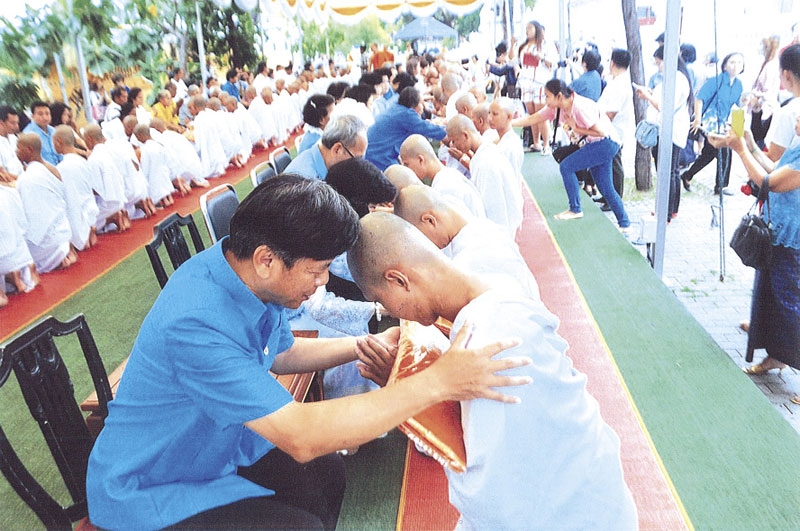 อาเล็ก จรรยาทรัพย์กิจ และ ดร.ศุลีมาศ สุทธิสัมพัทน์ นำส่งนาค สามเณรเข้าพระอุโบสถ...