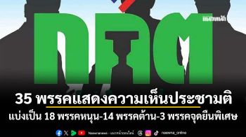 กกต.เผย 35 พรรคร่วมแสดงความเห็นประชามติ แบ่งเป็น 18 พรรคหนุน-14 พรรคต้าน-3 พรรคจุดยืนพิเศษ