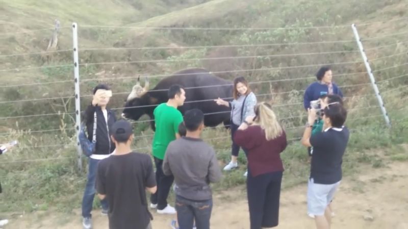 2 ม.ค.61 นายพงษ์เทพ มาลาชาสิงห์ ประธานเครือข่ายวิสาหกิจเกษตรและการท่องเที่ยวชุมชนจังหวัดนครราชสีมา เปิดเผยถึงกรณีนักท่องเที่ยวพบเห็นกระทิงตัวใหญ่ ขณะกำลังกินหญ้าริมรั้วไฟฟ้าและได้สัมผัสอย่างใกล้ชิดว่า ช่วงวันหยุดยาวเทศกาลปีใหม่ 2561 ที่อำเภอวังน้ำเขียว จังหวัดนครราชสีมา มีนักท่องเที่ยวจำนวนมากได้พากันไปส่องดูกระทิงฝูงใหญ่นับกว่า 100 ตัว และยังได้พบเห็นกระทิงหนุ่มตัวใหญ่ ตัวสีดำมัน น้ำหนักตัวมากกว่า 1 ตัน