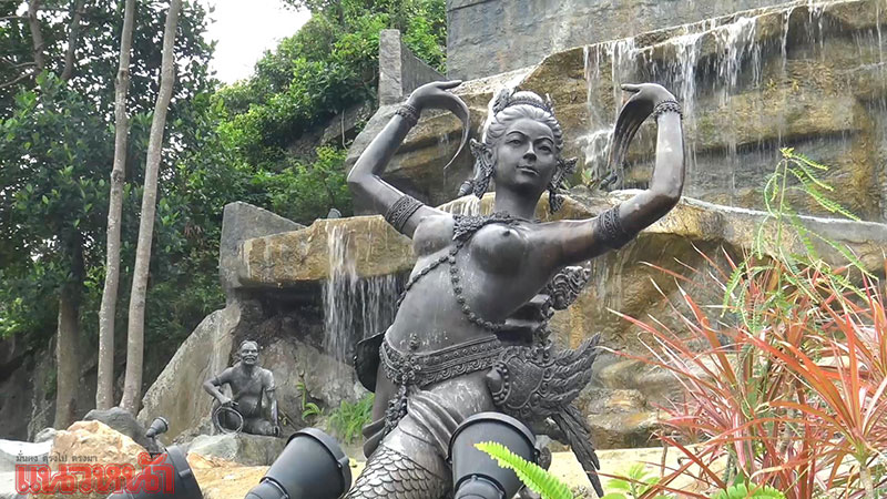 6 ม.ค.60 ที่บริเวณสวนเสรี แหลมสมิหลา อ.เมือง จ.สงขลา ซึ่งเป็นสถานที่พักผ่อนหย่อนใจของชาวสงขลามายาวนานคู่กับแหลมสมิหลา ที่มีเทศบาลนครสงขลารับผิดชอบและดูแลอยู่ ขณะนี้ได้มีการพัฒนาสวนเสรีแห่งนี้ให้เป็นแหล่งท่องเที่ยวในรูปแบบของวรรณคดีไทย โดยเนรมิตน้ำตกในสระอโนดาตในวรรณกรรมเลื่องชื่อ"พระสุธน - มโนราห์" ที่มีนางกินนรี 7 คนเล่นน้ำตกในสระอโนดาตและพรานบุญใช้บ่วงนาคบาศจับตัวนางมโนราห์