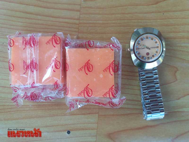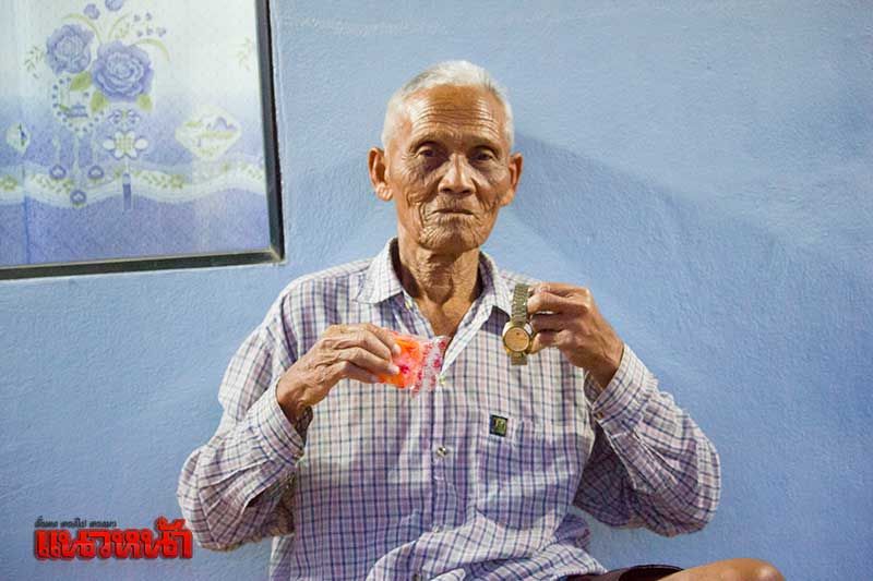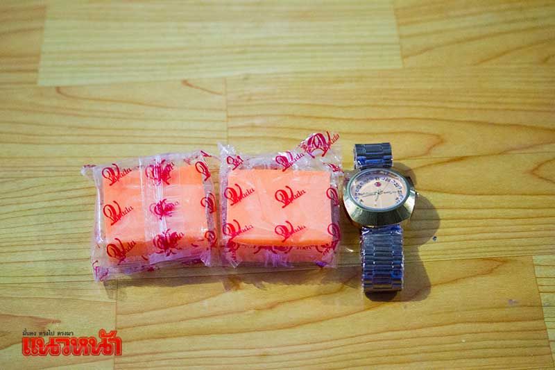 ตนจับฉลากไปสองอันปรากฏว่า ไม่ได้รางวัลอะไรเลย สักพักผู้หญิงคนนั้นก็บอกว่า "นี่..ตาได้นาฬิกา แต่คุณตาต้องเสียเงิน 2,500 บาทนะ" แล้วเดินไปบอกผู้ชายที่อยู่ในรถยนต์กระบะ ให้เอานาฬิกามาให้ ตนก็เถียงจับสลากไม่ได้อะไร แต่ผู้หญิงก็ยืนยันเสียงแข็ง ว่าตนเองได้รางวัลใหญ่เป็นนาฬิกาเรือนทอง ส่วนลูกเขย ที่อยู่หลังบ้าน ก็โดนผู้หญิง ในแก๊งเดียวกันประกบ พูดจาลักษณะถามว่า "มีคนมาขายสบู่ไหม" จนลูกเขยเอะใจ รีบเดินออกมาหาตนเอง จึงพอทราบว่า ตนถูกหลอกให้จับฉลาก พอได้รางวัลเป็นนาฬิกา เรือนทอง ต้องเสียเงิน 2,500 บาท