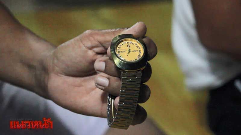 แต่ปรากฏว่า ลูกเขยไม่ยอมจ่ายเงินให้ เพราะเห็นว่า นาฬิกาเรือนดังกล่าว มีราคาเพียง 100 กว่าบาท จนได้มีปากเสียงกับแก๊งต้มตุ๋นอย่างรุนแรง จากนั้น ลูกเขย ได้บอกกับตนว่า อย่าเพิ่งจ่ายเงิน เดี๋ยวจะบอกภรรยา ซึ่งเป็นลูกสาวของตนเอง ก่อนพากันไปแจ้งผู้ใหญ่บ้าน ระหว่างไปแจ้งผู้ใหญ่บ้าน เวลาไม่ถึง 10 นาที ลูกเขย กลับมาบ้านพร้อมกับภรรยา และนายสมนึก พิมพ์ลา สารวัตรกำนัน ต.หัวงัว ปรากฏว่า แก๊งค์ต้มตุ๋นก็ไม่อยู่แล้ว
