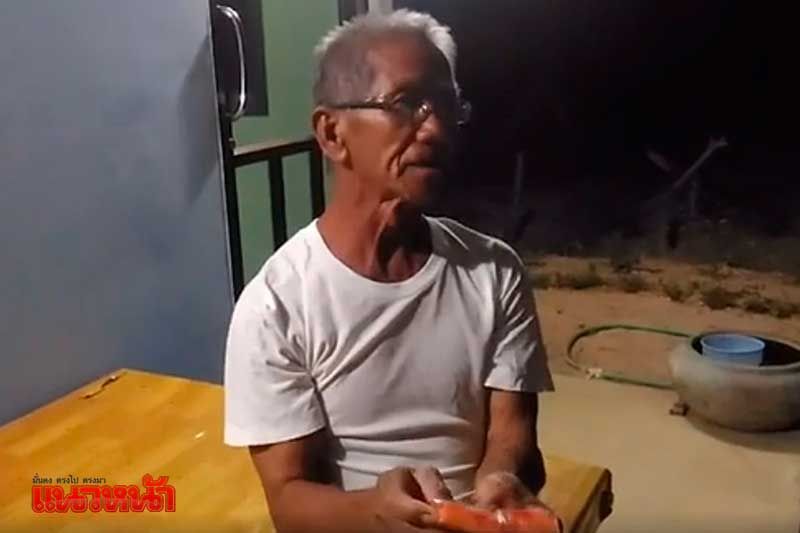 คุณตากันหา ชมชื่น อายุ 82 ปี เปิดเผยว่า บ้านอยู่ห่างไกลจากชุมชนและหมู่บ้าน พอสมควร โดยเมื่อช่วงบ่าย ขณะที่กำลังนอนเล่นอยู่ที่บริเวณหน้าบ้านเพียงลำพัง ได้มีรถยนต์กระบะ สีขาว ยี่ห้อโตโยต้า จำหมายเลขทะเบียนและหมวดจังหวัดไม่ได้ วิ่งและเลี้ยวเข้ามาภายในบ้าน ตอนแรกนึกว่าเป็นลูกชาย แต่สักพักได้มีผู้หญิงจำนวน 2 คน รูปร่าง อวบๆ ผมยาวประบ่า และมีผู้ชายอีก 1 คน เป็นคนขับรถยนต์คันดังกล่าว โดยผู้หญิงเดินเข้ามาหาตน และบอกให้จับฉลากฟรีได้รางวัลไม่เสียตังค์ แม้แต่บาทเดียว