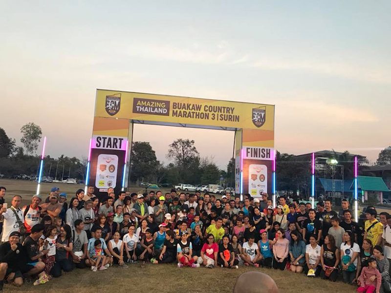 21 ม.ค.61 เมื่อเวลา 05.00 น.ที่ผ่านมา ผู้สื่อข่าวประจำ จ.สุรินทร์ ได้ลงพื้นที่ โรงเรียนบ้านโนนสวรรค์ ต.เกาะแก้ว อ.สำโรงทาบ จ.สุรินทร์ เพื่อเกาะติดรายการแข่งขันวิ่ง Buakaw Country Marathon ปีที่ 3 ซึ่งบรรยากาศการเป็นไปอย่างคึกคัก บรรดานักวิ่งทั้งชาวไทยและต่างประเทศ กว่า 1,500 คน มาลงทะเบียนวิ่งและรับเสื้อพร้อมหมายเลข มีนักวิ่งรุ่นจิ๋ว ที่สุดในงาน อายุเพียง 4 ขวบ คือ เด็กชายภคินต์ เงินลาด เดินทางมา อ.จักราช จ.นคราราชสีมา พร้อมกับพ่อแม่ ซึ่งเป็นนักวิ่ง