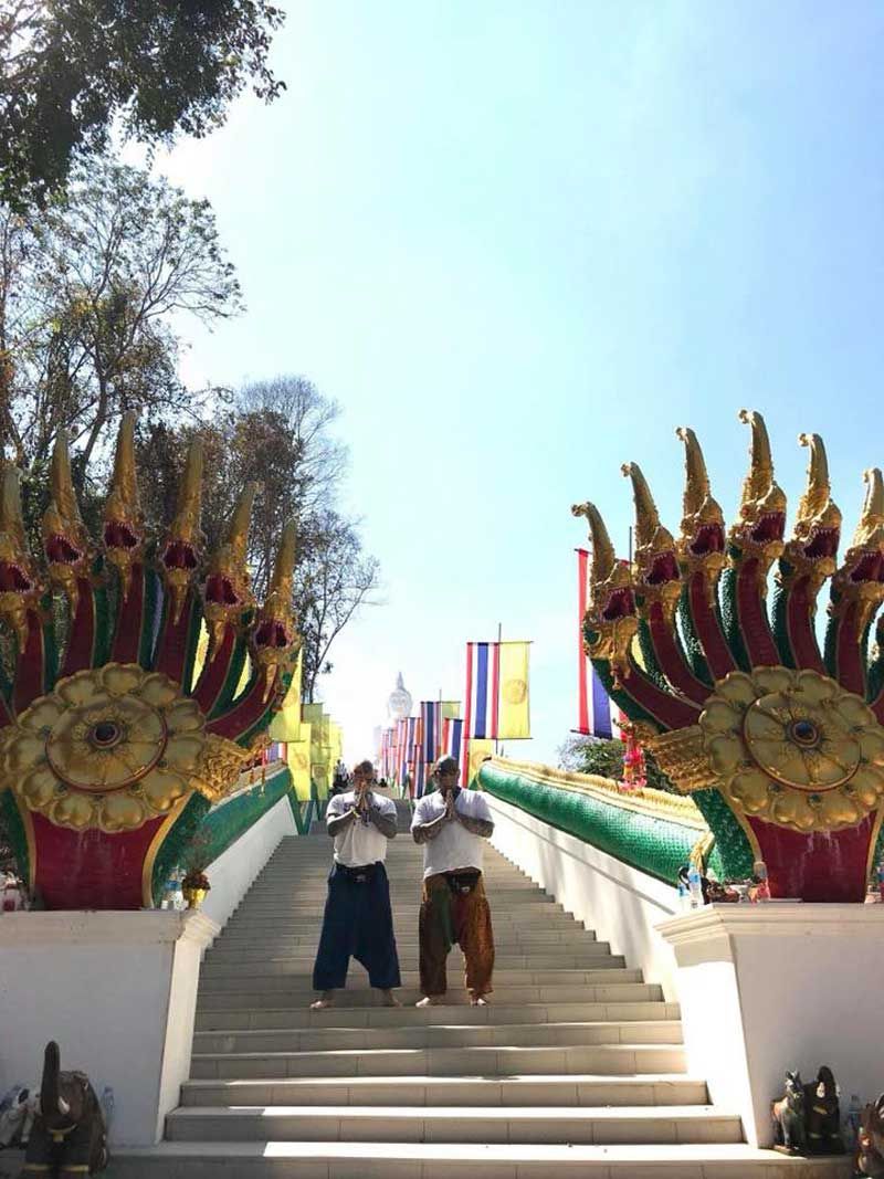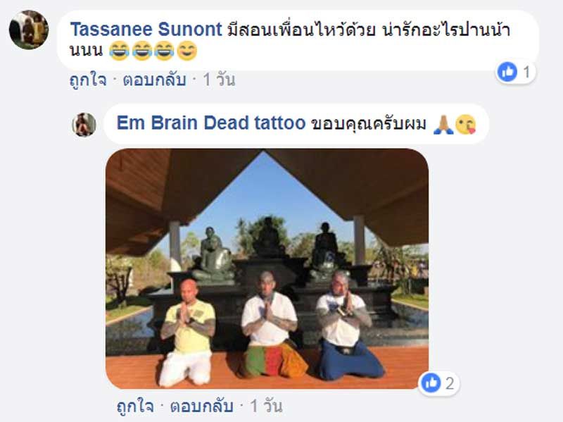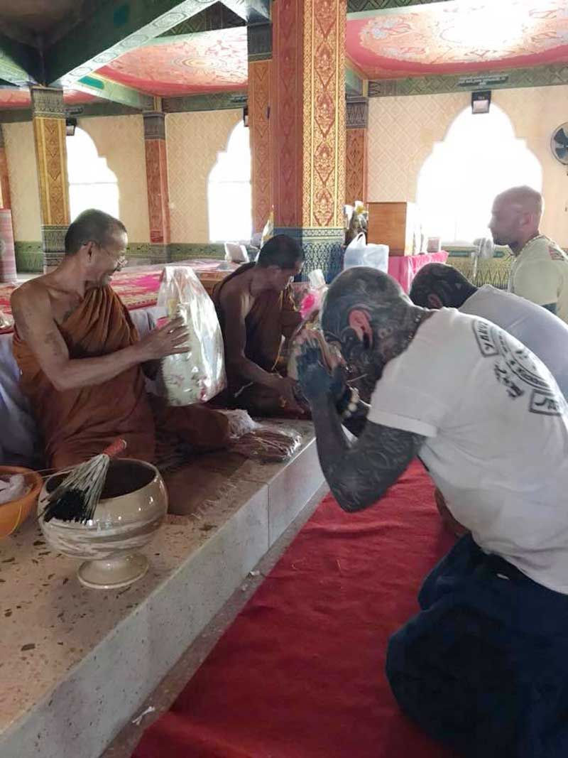 เรื่องราวดีๆที่ถูกแชร์บนโลกออนไลน์ โดยผู้ใช้เฟซบุ๊กชื่อว่า Em Brain Dead tattoo พบว่าเป็นชาวต่างชาติสักลายเต็มตัว ในคลิปจะเห็นได้ว่า ชายต่างชาติคนหนึ่งดูคล่องแคล่วในการเข้าวัดทำบุญเป็นอย่างมากพร้อมทั้งสอนเพื่อนต่างชาติอีก 3 คน กราบพระอย่างบรรจง พร้อมกับตั้งมโน 3 จบ