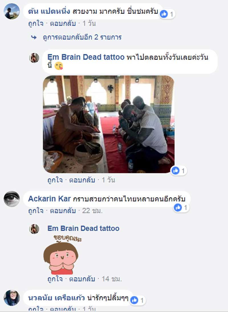 หลังจากนั้นก็ได้มีชาวเน็ตเข้ามาชื่นชมในความน่ารักของต่างชาติทั้ง 4 คน ต่างบอกว่าดูไปยิ้มไป ถึงแม้จะสักลายเต็มตัวแต่หัวใจของเขาอ่อนโยนยิ่งนัก