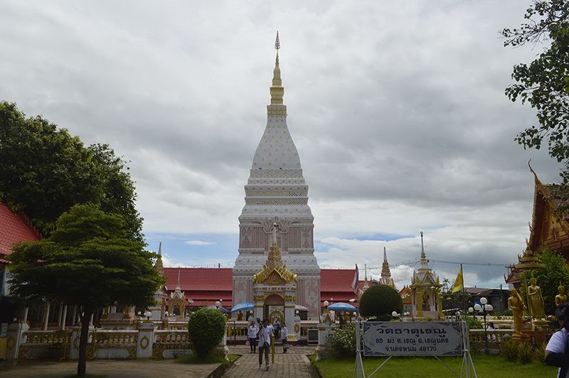 “วัดธาตุเรณู” ตั้งอยู่ ต.เรณู อ.เรณูนคร จ.นครพนม เดิมชื่อ”วัดกลาง” เพราะตั้งอยู่ระหว่างตำบลเรณูและตำบลโพนทอง สร้างขึ้นมาแต่ครั้งโบราณกาล แต่ค้นหาหลักฐานไม่พบว่าใครเป็นผู้สร้างใน พ.ศ.ใด แต่ตามคำบอกเล่าจากผู้เฒ่าปากต่อปากสืบมาว่า ราวปี พ.ศ. 2373 “พระแก้วโกมล” เจ้าเมืองผู้ปกครองเมืองเวคนแรก หลังสร้างบ้านแปลงเมืองเสร็จเรียบร้อยแล้ว ปรึกษากับอุปราชและกรรมการเมือง มีมติเป็นเอกฉันท์ตกลงสร้างวัดขึ้นไว้ตรงที่ใจกลางเมือง เพื่อให้เป็นวัดคู่บ้านคู่เมือง และสำหรับประกอบพิธีถือน้ำพิพัฒน์สัตยา ดังนั้นวัดนี้จึงเรียกชื่อตามสถานที่ตั้งวัดว่า “วัดกลาง” สืบๆ กันมา เพราะตั้งอยู่กลางเมือง