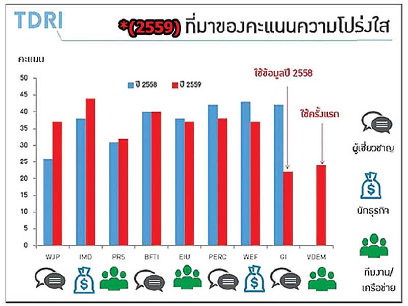 ย้อนไปเมื่อต้นปี 2560 สมเกียรติ ตั้งกิจวานิชย์ ประธานสถาบันวิจัยเพื่อการพัฒนาประเทศไทย (TDRI) เคยกล่าวถึงเรื่องนี้ในงานเสวนา “ปัญหาและทางออกกรณีดัชนีการรับรู้ด้านคอร์รัปชั่น (CPI) ของไทย” ที่ TDRI จัดร่วมกับสำนักงานกองทุนสนับสนุนการวิจัย (สกว.) ไว้ 2 ส่วนคือ