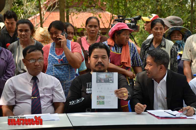 น.ส.นภาวรรณ สำราญราษฎร์ แกนนำกลุ่มชาวบ้าน กล่าวว่า ที่พวกตนมายืนถือป้ายร้องเรียนในวันนี้ เนื่องจากทางวัดจะทำการนำเสามาทำกำแพงบริเวณถนน ที่เป็นทางเดินเข้าออกข้างวัดที่ติดกับที่ดินของตน ซึ่งตนถมที่ดินแล้วให้ชาวบ้านเข้ามาจอดรถฟรี ซึ่งก่อนหน้านี้มีการทำที่จอดรถและมีการเก็บเงินคันละ 40 บาท ก่อนที่จะต้องเดินมาขึ้นรถกอล์ฟต่อเข้ามาในวัดอีก แต่ที่ดินของตนนั้นติดกับวัด และให้จอดรถฟรีด้วย
