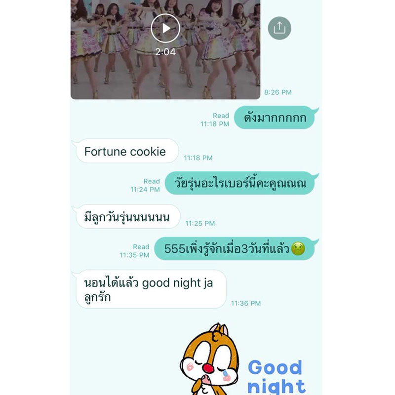 30 ม.ค. 60 นางสาวแพทองธาร ชินวัตร หรือ อุ๊งอิ๊ง บุตรสาว นายทักษิณ ชินวัตร อดีตนายกรัฐมนตรี โพสต์เฟซบุ๊กส่วนตัว"Ing Shinawatra" โดยเจ้าตัวถึงกลับทึ่งหลังบิดาตัวเอง รู้จักวงBNK48 โดยส่งคลิปเพลง"Koisuru Fortune Cookie คุกกี้เสี่ยงทาย" #bnk48 พร้อมข้อความแชทกับลูก ก่อนจะบอกให้ลูกเข้านอน