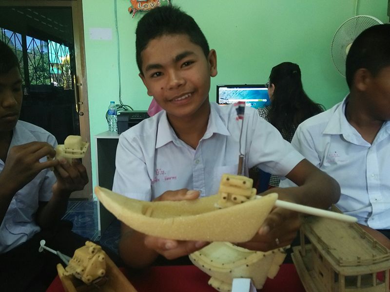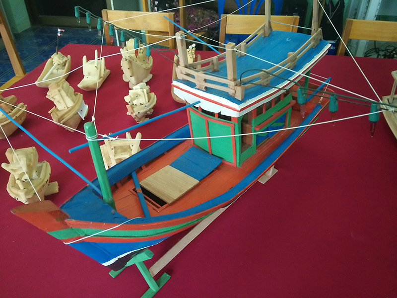 โดยน้องๆนักเรียนโชว์กันทำเรือประมงพื้นบ้าน เช่น เรือพรีส เรือหางยาว เรือหัวโทง และเรือประมงปั่นไฟที่ย่อส่วนลงมาขนาดจิ๋วเล็กเท่าฝ่ามือของนักเรียนที่ได้เรียนรู้และจิตนาการ จากการที่บ้านของน้องๆอยู่ติดริมชายฝั่งทางทะเล จึงคิดสร้างสรรค์ออกแบบรูปทรงคล้ายของจริงอย่างมาก ด้วยการทำอย่างตั่งใจและมีรุ่นพี่ที่จบการศึกษาไปคือ นายชารีฟีน สูนสละ อายุ 18 ปี บ้านเลขที่156 ม.6 ต.แหลมสน อ.ละงู จ.สตูล อดีตนักเรียนที่ทำเรือประมงปั่นไฟจำลองของจริงมาเป็นเรือประมงปั่นไฟขนาดจิ๋วที่เสมือนจริงอย่างมาก ด้วยความตั้งใจ มุ่งมั่น จึงเป็นต้นแบบของรุ่นน้องในโรงเรียนแห่งนี้ สืบทอดมาเป็นวิชาเรียนศิลปะที่สอนน้องอีกด้วย