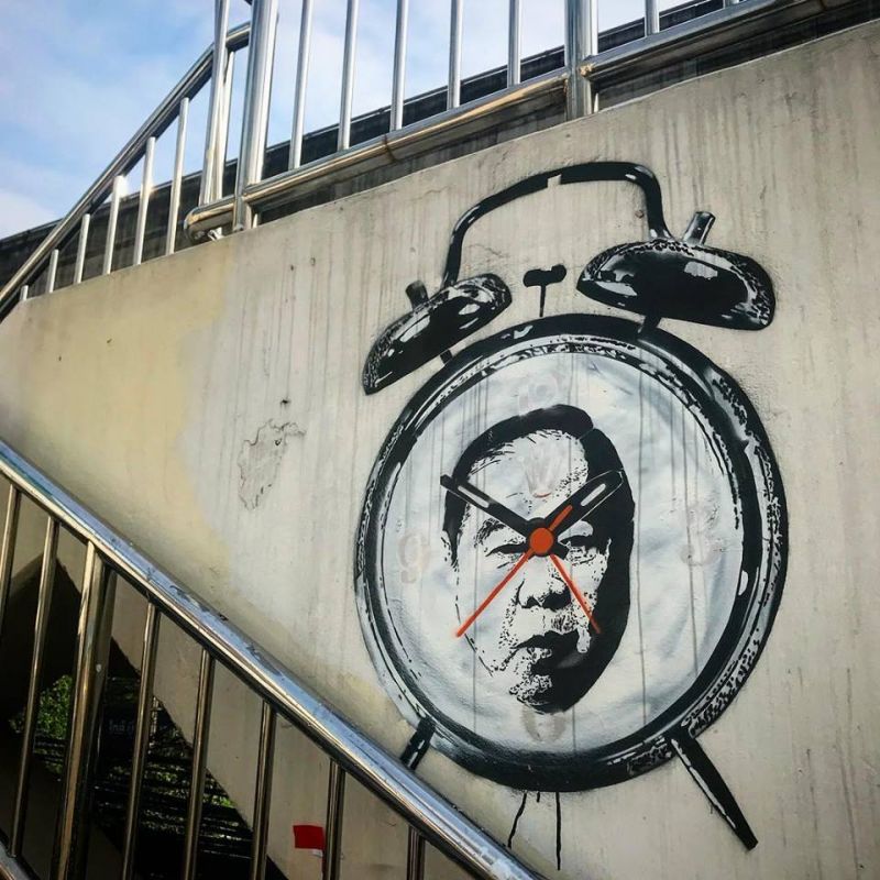 สืบเนื่องจากกรณีศิลปินกราฟิตี้เจ้าของนาม “Headache Stencil” ได้รังสรรค์ผลงานบนสะพานลอยแห่งหนึ่งบริเวณปากซอยสุขุมวิท 58 ซึ่งเป็นรูปนาฬิกาปลุกตรงกลางเป็นภาพใบหน้าของคนซึ่งดูคล้าย พล.อ.ประวิตร วงษ์สุวรรณ รองนายกรัฐมนตรี และ รมว.กลาโหม ที่กำลังถูกสังคมวิพากษ์วิจารณ์อย่างหนักจากกรณีนาฬิกาหรู จนเจ้าหน้าที่ต้องตามไปทาสีปิดทับเพื่อลบภาพดังกล่าวบนสะพานลอยทิ้งไปนั้น (อ่านรายละเอียดข่าว: แชร์สนั่น!ศิลปินพ่นกราฟฟิตี้รูปหน้า'บิ๊กป้อม' ล้อเลียนปมนาฬิกา)