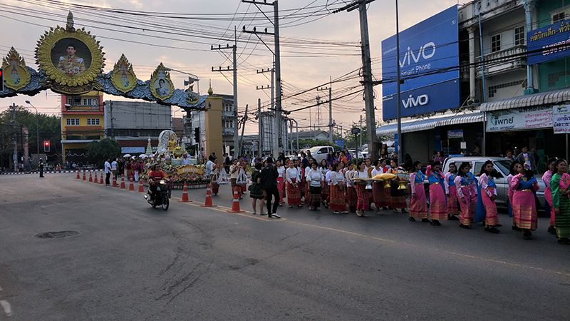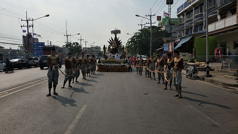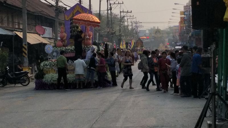 บรรยากาศเป็นไปด้วยความสนุกสนานและยิ่งใหญ่ เต็มไปด้วยประชาชนนักท่องเที่ยวจำนวนมาก ต่างออกมาเที่ยวชมขบวนแห่กันอย่างเนืองแน่น และระหว่างขบวนแห่เคลื่อนผ่านประชาชนก็ยังได้ร่วมอนุโมทนาบุญกันด้วย