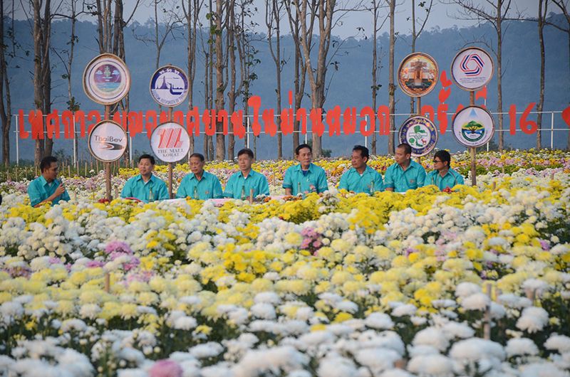 6 ก.พ.61 ที่แปลงสวนดอกเบญจมาศ องค์การบริหารส่วนตำบลไทยสามัคคี อำเภอวังน้ำเขียว จังหวัดนครราชสีมา นายอภิชาติ ธนะมัย นายอำเภอวังน้ำเขียว จังหวัดนครราชสีมา พร้อมด้วยนายสมบูรณ์ สิงกิ่ง นายกองค์การบริหารส่วนตำบลไทยสามัคคี พร้อมด้วยการท่องเที่ยวแห่งประเทศไทย สำนักงานจังหวัดนครราชสีมา , นายพงษ์เทพ มาลาชาสิงห์ ประธานเครือข่ายชมรมการท่องเที่ยวชุมชนจังหวัดนครราชสีมา และนายปรีชา ลิ่มอั่ว ผู้จัดการทั่วไปปฏิบัติการศูนย์การค้าเดอะมอลล์โคราช ได้ร่วมกันแถลงข่าวการจัดงานเบญจมาศบานในม่านหมอก ประจำปี 2561 สโลแกนว่า “ มาบอกรัก ฝากหัวใจ ไว้ที่วังน้ำเขียว Let’s say love@Wang Nam Khieo “ โดยใช้พื้นที่บริเวณโดยรอบที่ทำการองค์การบริหารส่วนตำบลไทยสามัคคี อำเภอวังน้ำเขียว จัดงานขึ้นระหว่างวันที่ 10 กุมภาพันธ์ไปจนถึงวันที่ 18 กุมภาพันธ์นี้ รวมระยะเวลาจัดงาน 9 วัน
