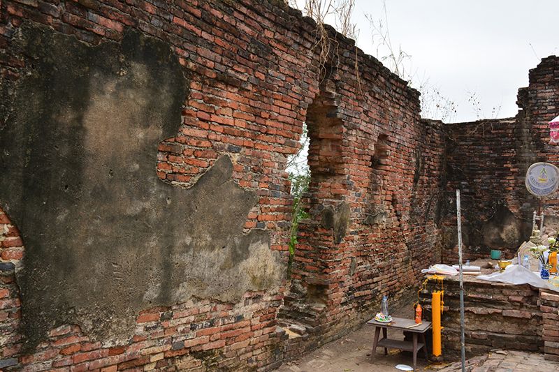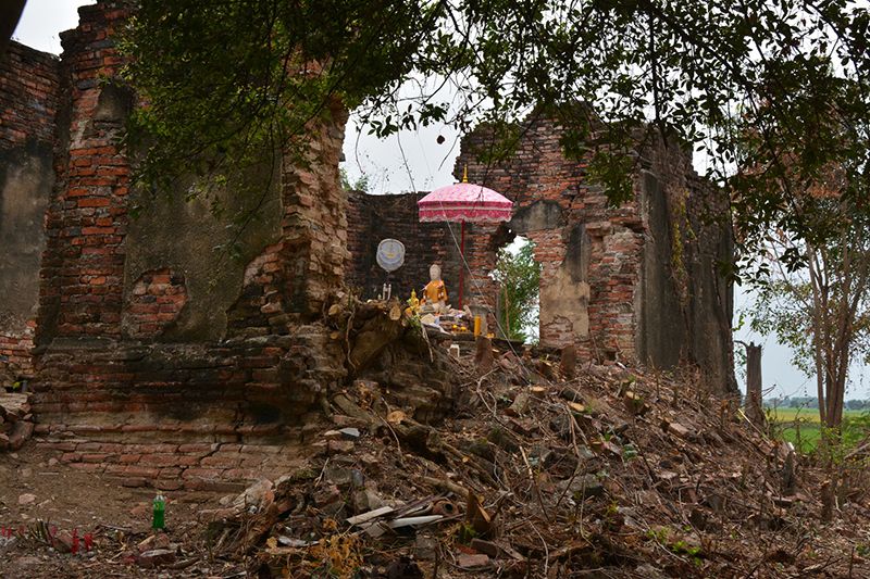 นางอนงค์ บุญเลิศ อายุ 66 ปี อยู่บ้านเลขที่ 121 ม.2 ต.โพประจักษ์ อ.ท่าช้าง จ.สิงห์บุรี ซึ่งบ้านอยู่ใกล้วัดร้างนี้ได้เล่าว่า พ่อของตนเป็นคนที่นี่ ตนเพิ่งย้ายมาอยู่ที่นี่ประมาณ 50 กว่าปีแล้ว ตั้งแต่ที่มาอยู่ก็เห็นวัดร้างแห่งนี้เกิดขึ้นมาแล้ว ชาวบ้านเรียกกันว่า “วัดบ้านสร้าง” ซึ่งเป็นวัดร้างอยู่กลางป่ารกมีต้นโพธิ์ใหญ่ล้มทับโบสถ์อยู่ แต่ต้นไม้ได้ผุพังไปตามกาลเวลา เคยมีพระมาธุดงค์พักที่นี่ แต่อยู่ได้เพียงไม่เกิน 2 คืนก็กลับ ตนเคยถามว่าทำไมถึงรีบกลับ พระตอบว่าเจ้าที่แรง ในส่วนของพระพุทธรูปนั้นตนไม่เคยเห็น แต่เพิ่งมาเห็นเหมือนสร้างใหม่ที่ตั้งอยู่ มีชาวบ้านมาจุดธูปไหว้กันบ่อย บ้างก็ขอโชคลาภ บ้างก็มาบนบานศาลกล่าว และก็เห็นมาแก้บนด้วยหัวหมูกันบ่อยๆ