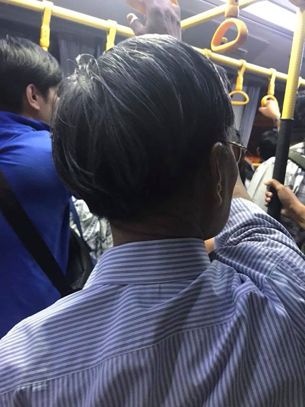 จุดพีคมันอยู่ตรงนี้ เราเดินนำท่านไปขึ้นรถบัสเพื่อต่อไปอาคารผู้โดยสาร กะว่าให้ท่านนั่ง ปรากฏท่านเลือกที่จะยืนและโหนแบบที่เห็นในรูป ระหว่างนั้นท่านก็พูดคุยกับประชาชนตลอดทาง พร้อมกับทักษะการโหนรถบัสอย่างชำนาญในวัย80!!!