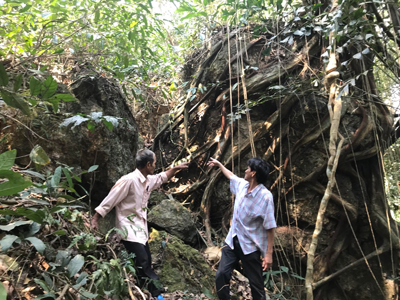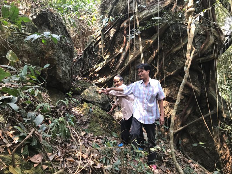 กำนันบุญสืบ ได้กล่าวว่า เกี่ยวกับคำร่ำลือดังกล่าวเป็นเรื่องจริง พร้อมทั้งนำทางพาผู้สื่อข่าวเดินขึ้นไปยังบริเวณเขาถ้ำป่าชุมชนของหมู่บ้าน ซึ่งเป็นเนินเขาไม่สูงมาก ห่างจากหมู่บ้านประมาณ 500 เมตร พอขึ้นไปถึงพบกองหินขนาดใหญ่วางทับซ้อนกัน พอขึ้นไปดูพบว่าเป็นช่องเข้าไปเหมือนกับปากถ้ำ ลึกเข้าไปประมาณ 1 เมตร ก็มีแผ่นหินปิดกั้นไว้ไม่สามารถเข้าไปได้ และยังพบว่าบริเวณทางเข้าที่คล้ายปากถ้ำมีร่องรอยเหมือนมีการเดินเข้าออก จนกลายเป็นร่องทางเดิน ตรงหน้าปากถ้ำที่ถูกปิดยังเหลือช่องขนาดเล็ก เมื่อส่องเข้าไปก็พบว่ามีความลึกลงไป แต่ไม่สามารถมองเห็นภายในได้เพราะมีผนังถ้ำบังอยู่ นอกจากนี้รอบๆถ้ำ ยังมีต้นไม้ใหญ่ขนาดใหญ่ขึ้นอยู่หลายต้น และยังมีซากปรักหักพังของปูน ซึ่งเป็นสำนักสงฆ์ร้างในอดีต