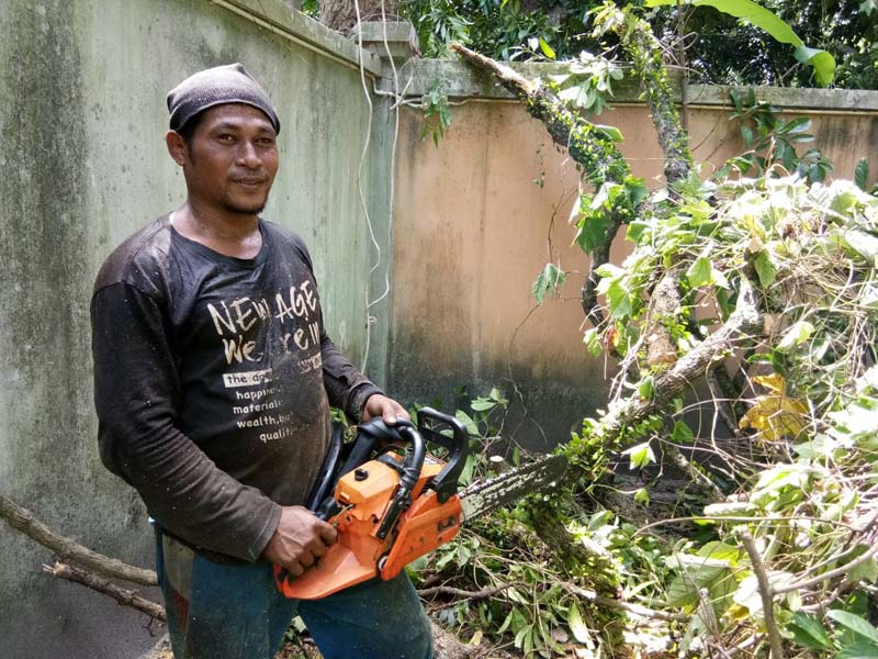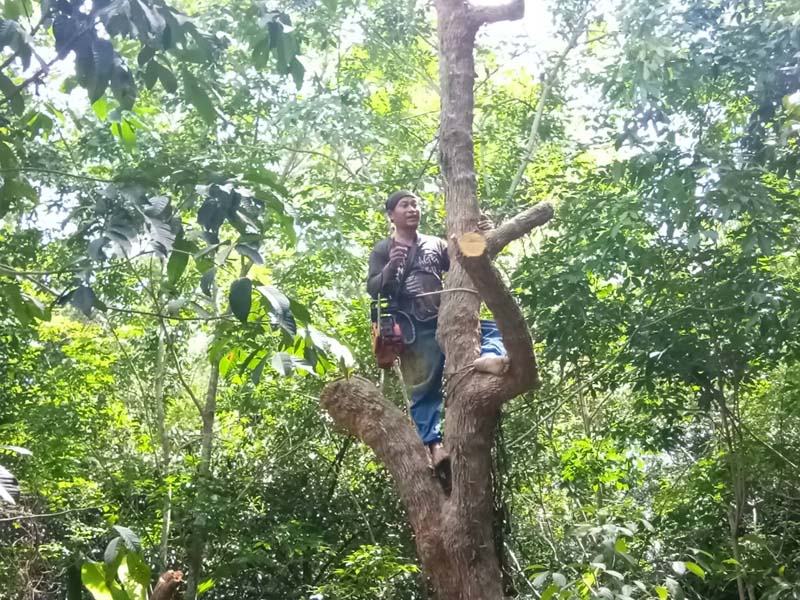 28 มิ.ย.61 นายสุทัศน์ มีภพ อายุ 44 ปี ผู้ช่วยผู้ใหญ่บ้าน ม.ที่ 3 ต.ไชยมนตรี อ.เมือง จ.นครศรีธรรมราช นอกเหนือจากการดูแลรับใช้ชาวบ้านในพื้นที่ในอาชีพผู้ช่วยผู้ใหญ่บ้านแล้ว อีกอาชีพหนึ่งที่จะต้องบอกว่าเป็นอาชีพที่สร้างรายได้เลี้ยงดูครอบครัวมาได้จนถึงทุกวันนี้ นั่นคืออาชีพ “ตัดไม้”