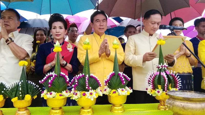 เวลา 17.00 น. ฝนยังคงปรอยปรายเป็นระยะๆ พล.ต.อ.อดุลย์ แสงสิงแก้ว รมว.แรงงาน ได้เดินทางมาเป็นประธานในพิธี มีนายสมชาย วิทย์ดำรงค์ ผวจ.พร้อมหัวหน้าส่วนราชการพ่อค้า ประชาชน ร่วมกันตั้งขบวนแห่เครื่องบูชาพญาศรีสัตตนาคราชจากถนนนิตโย แล้วนำไปวางยังแท่นบูชา ขณะนั้นฝนยังตกตลอดเวลา แต่หลังจากประธานในพิธีกล่าวคำบูชาแก่องค์พญาศรีสัตตนาคราชได้ไม่นาน ฝนก็หยุดตก ท้องฟ้าเปิดโล่งแจ่มใสเป็นที่น่าอัศจรรย์ยิ่ง จากนั้นคณะนางรำจากเขตอำเภอเมืองนครพนม นักเรียนโรงเรียนปิยะมหาราชาลัย และโรงเรียนนครพนมวิทยาคม จึงรำบูชาบวงสรวง จำนวน 4 ชุด พร้อมกันนี้ รมว.แรงงาน ได้เดินชมและชิมอาหารโรงทานที่มีผู้ใจบุญ นำอาหารหลากหลายชนิดมาบริการฟรีแก่ผู้ร่วมงานและนักท่องเที่ยวกว่า 100 บูธ และเยี่ยมชมร้านจำหน่ายสินค้าชุมชน (โอท็อป) ราคาประหยัด และตลาดนัดผู้สูงอายุ ที่ทางจังหวัดเน้นผลิตภัณฑ์จากภูมิปัญญาท้องถิ่น