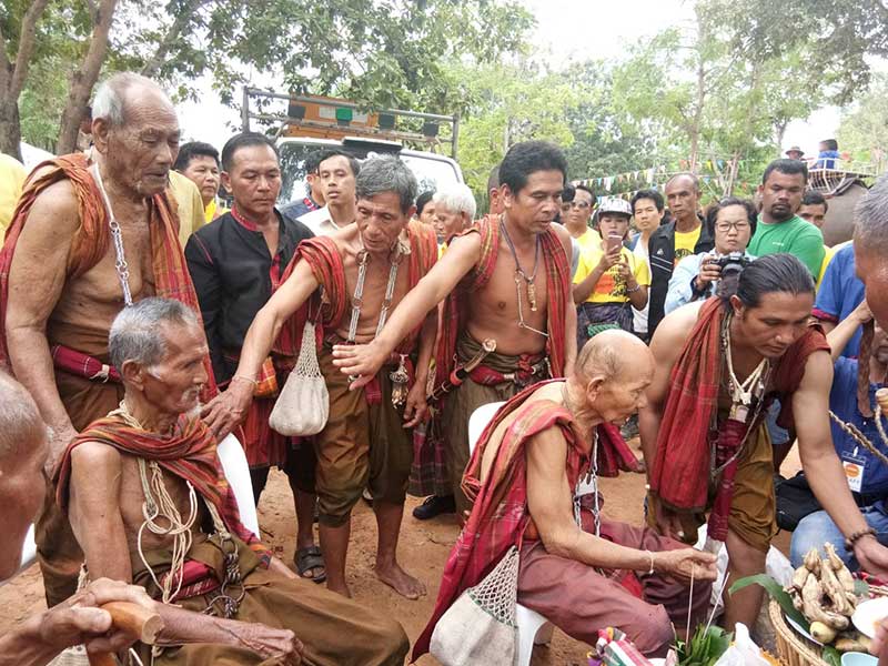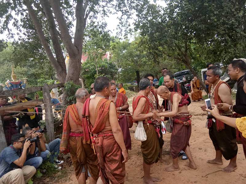 วันนี้ (21 ก.ค.61) ที่วัดป่าอาเจียง บ้านหนองบัว ตำบลกระโพ อำเภอท่าตูม จังหวัดสุรินทร์ นายบุญมา แสนดี อายุ 90 ปี หมอช้างใหญ่ ประจำหมู่บ้านช้าง ซึ่งเคยออกคล้องช้างป่าตามแนวเทือกเขาพนมดงรัก ชายแดนไทย-กัมพูชาได้มากถึง 50 กว่าเชือกได้พาหมอช้าง ร่วมกันประกอบพิธีเซ่นไหว้ศาลครูปะกำช้างที่ควาญช้างคนเลี้ยงช้างเคารพนับถือเป็นที่สิงสถิตย์ พระมอเฒ่า ต้นตำรับ ของตำนานคนคล้องช้าง และเป็นที่เก็บเชือกคล้องช้าง หรือเชือกประกำ ใช้คล้องช้างป่าในอดีต แม้ว่าในปัจจุบันการคล้องช้างหรือการจับช้างจากในป่าจะไม่มีให้เห็นแล้ว เนื่องจากช้างเป็นสัตว์ป่าคุ้มครองตามพระราชบัญญัติรักษาช้างป่า แต่ความเชื่อของกูยในจังหวัดสุรินทร์ แต่ยังคงมีการทำเชือกปะกำ ที่ใช้สำหรับคล้องช้าง เพราะเชื่อในความเป็นสิริมงคล และสืบทอดองค์ความรู้ถึงควาญช้างรุ่นต่อไป