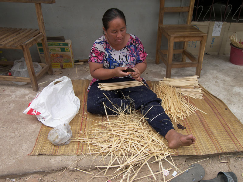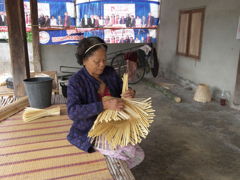 นายบุญมา สะอาด อายุ 40 ปี อยู่บ้านเลขที่ 12 หมู่ที่ 1 บ้านนาจิก ต.นาจิก อ.เมืองอำนาจเจริญ จ.อำนาจเจริญ กำลังสานมวยนึ่งข้าว กล่าวว่า ว่างจากการขายสินค้าตามตลาดนัดแล้ว ก็จะมานั่งสานมวยนึ่งข้าวเหนียวแทน ก็เป็นการเพิ่มรายได้อีกทางหนึ่ง ดีกว่าอยู่เฉยๆ ในแต่ละวันจะทำได้ประมาณ 15 -20 ใบ ซึ่งคนในตำบลนาจิกทำมวยนึ่งข้าวเหนียวส่งขายทุกคน ทำให้เงินในชุมชนสะพัดหมุนเวียนดีมาก