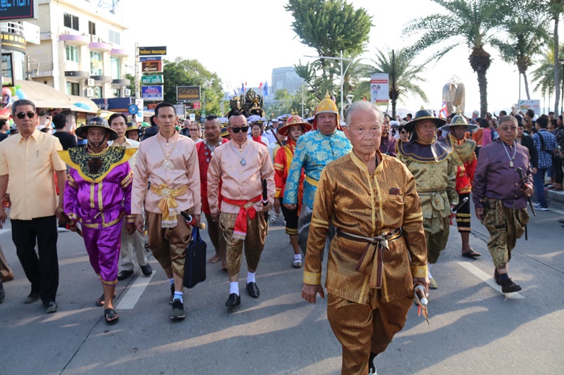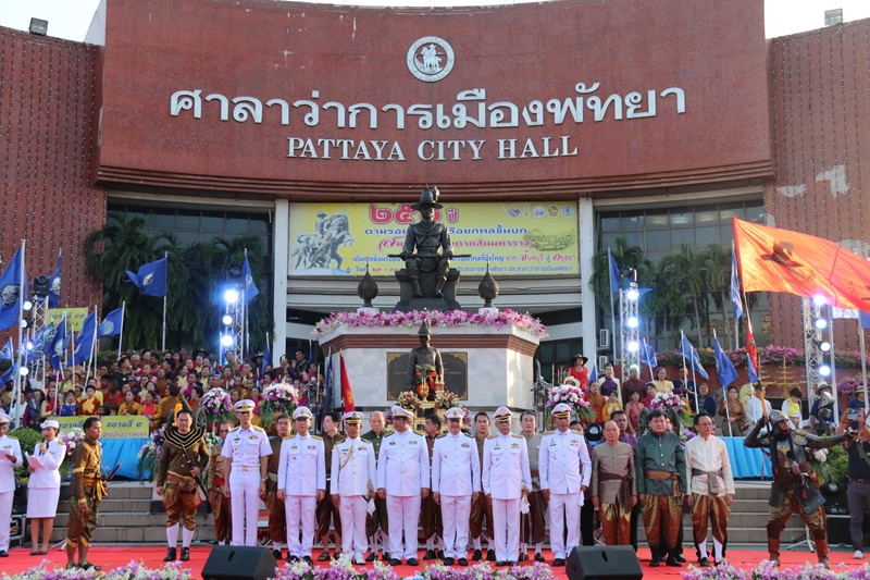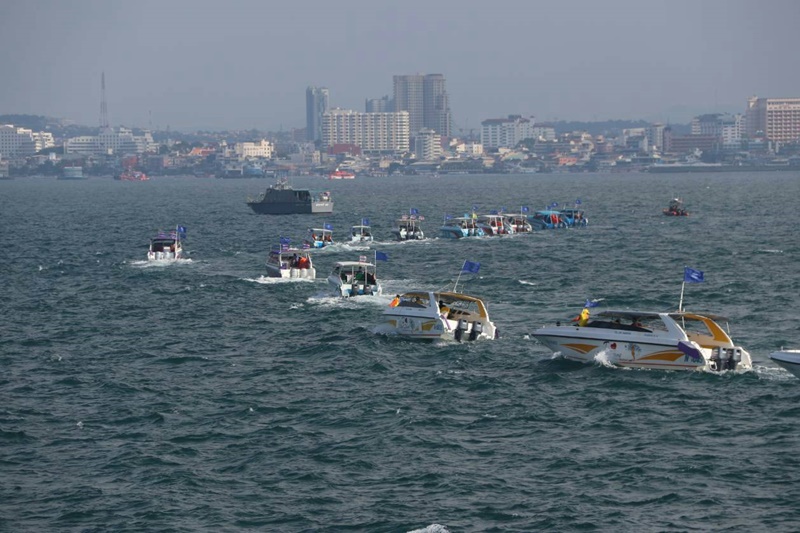 ขบวนเรืออัญเชิญพระบรมรูป สมเด็จพระเจ้าตากสินมหาราช ในโครงการ 250 ปี ตามรอยกองเรือยกพลขึ้นบก สมเด็จพระเจ้าตากสินมหาราช จากจันทบุรีสู่อยุธยา ยาตราทัพถึงพัทยาแล้ว จัดริ้วขบวนยิ่งใหญ่
