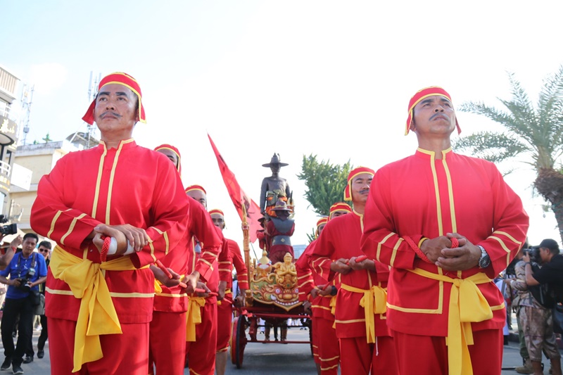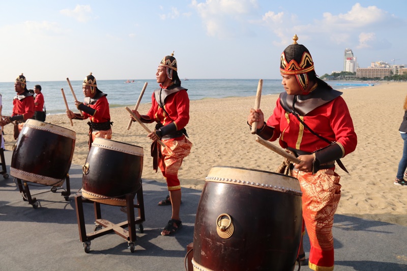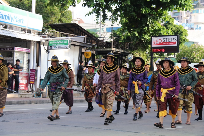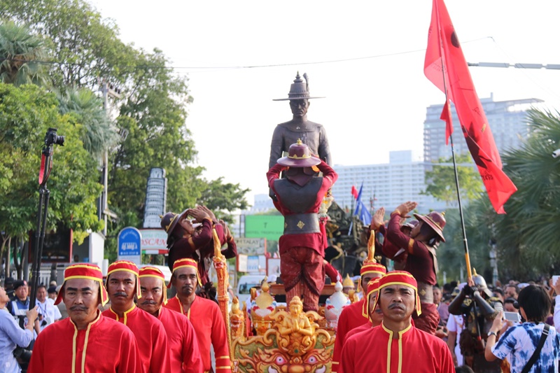 โดยมีจุดหมายที่จังหวัดพระนครศรีอยุธยา โดยเรือระบายพลประจำเรือหลวงอ่างทอง ได้อัญเชิญจากเรือหลวงอ่างทอง ที่จอดเรือบริเวณอ่าวพัทยา มาขึ้นฝั่ง ณ หาดพัทยาเหนือ อำเภอบางละมุง จังหวัดชลบุรี โดยมีข้าราชการ พี่น้องประชาชน นักท่องเที่ยว ในเมืองพัทยา เข้าร่วมในพิธีและยาตราทัพ เป็นริ้วขบวนอย่างยิ่งใหญ่จากหน้าหาดพัทยาเหนือ เพื่ออัญเชิญไปยังศาลาว่าการเมืองพัทยา เพื่อประกอบพิธีบำเพ็ญพระราชกุศลอุทิศถวาย รวมถึงกิจกรรมการแสดงต่างๆ ระหว่าง 16.00 - 21.00 น. ก่อนจะอัญเชิญไปที่อ่าวบางแสน เป็นที่หมายต่อไปในเช้าวันรุ่งขึ้น