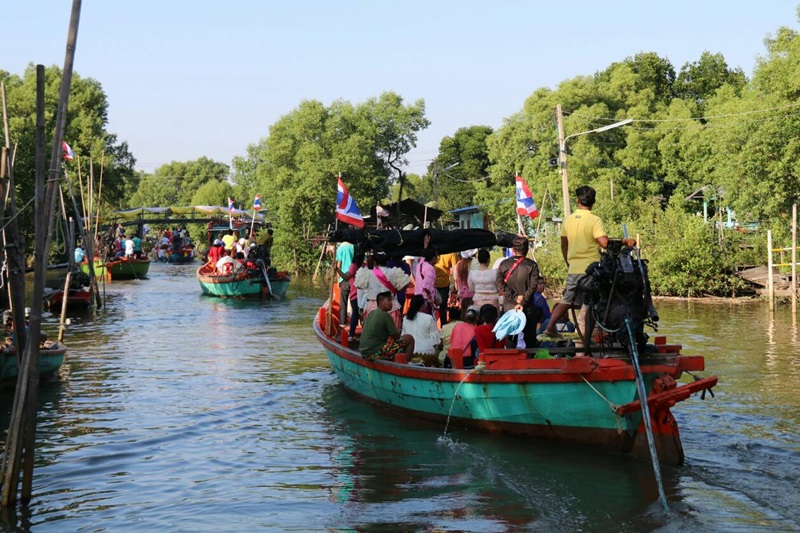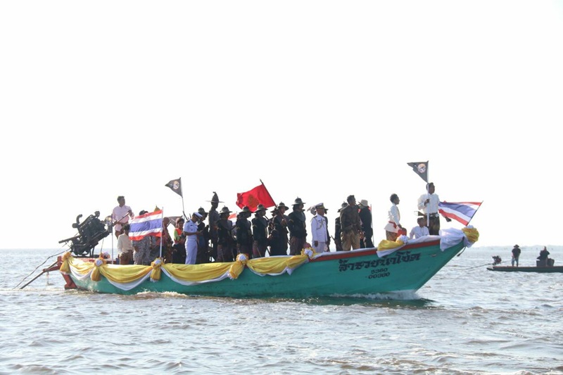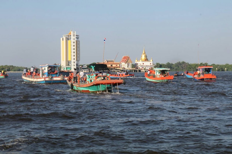 หมู่เรือโครงการ 250 ปีตามรอยกองเรือยกพลขึ้นบก สมเด็จพระเจ้าตากสินมหาราช จากจันทบุรีสู่อยุธยา ยาตราทัพถึงปากแม่น้ำบางปะกง ฉะเชิงเทราแล้ว มีกำหนดเข้าปากแม่น้ำเจ้าพระยาพรุ่งนี้เช้า