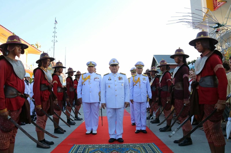 จากนั้นเมื่อขบวนเรือ ซึ่งนำโดยเรือหลวงอ่างทอง เดินทางถึงปากแม่น้ำเจ้าพระยา จะเปลี่ยนเป็น เรือหลวงสีชัง ร่วมกับ เรือปฏิบัติการพิเศษ 2 ลำ และจอดเรือเพื่อจัดกิจกรรมที่โรงเรียนนายเรือ จ.สมุทรปราการ โดยจัดงานเป็นระยะเวลา 3 วัน ระหว่าง 1 - 3 พ.ย.61 ก่อนจะเปลี่ยนขบวนเรือที่นำโดย เรือหลวงสีชัง เป็น เรือปฏิบัติการพิเศษจำนวน 2 ลำ ร่วมด้วย เรือจากกกรมการขนส่งทหารเรือ จำนวน 2 ลำ และเรือพายจำนวน 25 ลำ มุ่งหน้าสู่จังหวัดนนทบุรี โดยแวะจอดเรือจัดกิจกรรมที่วัดกู้ อ.ปากเกร็ด ในวันที่ 4 พ.ย.61 จากนั้นเรือจะออกเดินทางมุ่งหน้าสู่ จ.พระนครศรีอยุธยา และแวะจอดเรือจัดกิจกรรมที่ วัดป่างิ้ว จ.ปทุมธานี ระหว่าง 11.30 - 21.00 น.