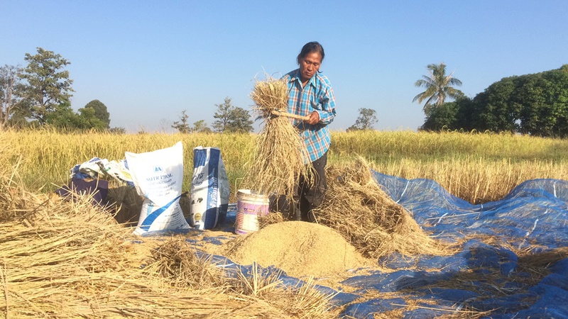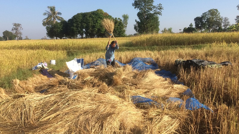 คุณป้าชาวสุรินทร์วัย 61 ปี ยังคงอนุรักษ์ภูมิปัญญาท้องถิ่น เกี่ยวข้าวด้วยมือ และนวดข้าวแบบโบราณดั่งเดิม
