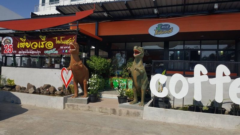 ซึ่งนอกจากจะขายก๋วยเตี๋ยวแล้ว ยังเปิดร้านกาแฟ “คาเฟ่ ไดโนเสาร์” เอาใจคนชอบกาแฟอีกด้วย โดยบรรยากาศทั้งร้านก๋วยเตี๋ยวและร้านกาแฟ จะมีการตกแต่งด้วยรูปปั้นไดโนเสาร์สายพันธุ์ต่างๆ ซึ่งเป็นของเล่นสะสมของลูกชาย ทั้งยังปั้นรูปไดโนเสาร์ขนาดใหญ่ไว้หน้าร้านเพื่อเป็นเอกลักษณ์ของร้านอีกด้วย โดยลูกค้าที่ผ่านไปมา สามารถสังเกตได้จากรูปปั้นไดโนเสาร์ และเป็นที่มาของชื่อร้าน “ก๋วยเตี๋ยวเรือ ไดโนเสาร์” อีกด้วย