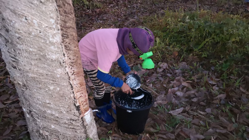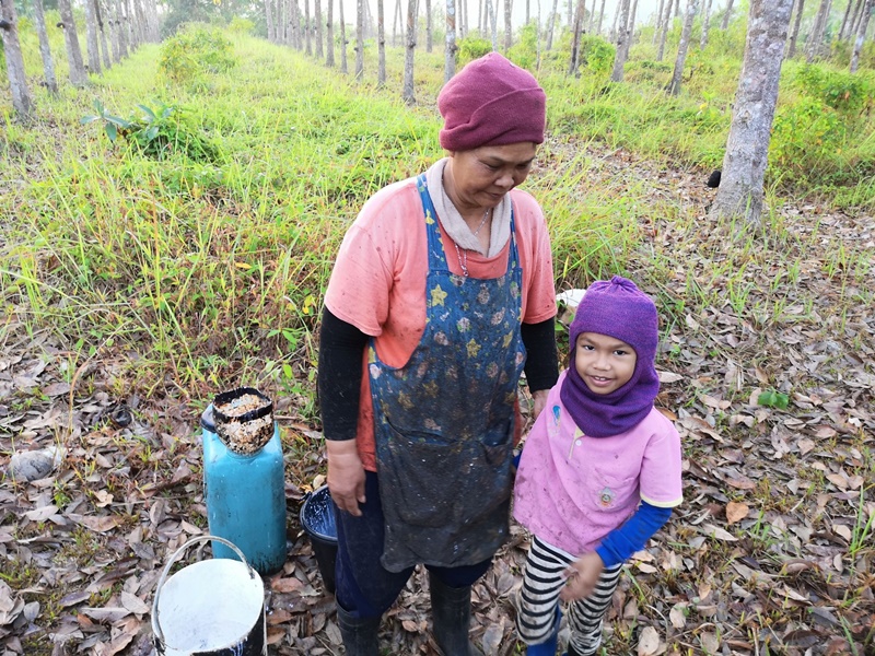 ด.ญ.วรกาญจน์ หรือน้องนาเดียร์ กล่าวว่า ตอนนี้ตนเองอายุ 6 ขวบ ตามย่ามาเก็บน้ำยางตั้งแต่ได้ 2 ขวบพอ 6 ขวบก็ช่วยเก็บน้ำยางได้เอง จะดูย่าตลอดเห็นย่าเก็บน้ำยางก็จะเก็บตาม จะตื่นนอนตั้งแต่ตี 5 หัวรุ่ง เพื่อช่วยเก็บน้ำยางก่อนไปโรงเรียน ปกติหากเป็นเสาร์-อาทิตย์จะช่วยย่าเก็บน้ำยางทั้ง 2 แปลง แต่พอวันที่ต้องไปโรงเรียนก็จะเก็บเพียงแปลงเดียว เพื่อที่จะรีบอาบน้ำไปโรงเรียนก่อน 8 โมง ซึ่งน้องไม่รู้สึกเหนื่อยเลย อยากช่วยย่า และในวันเกิดวันที่ 4 มีนาคมนี้ ของขวัญที่น้องนาเดียร์อยากได้ขนมเค้กและพิซซ่าอีกด้วย
