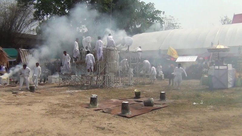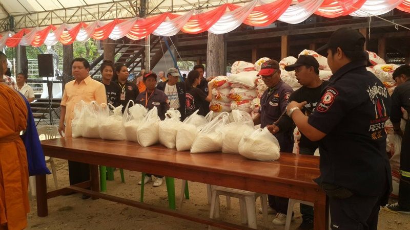 พร้อมกับหน่วยข้าราชการในพื้นที่ ต.ระบำ อ.ลานสัก จ.อุทัยธานี เจ้าหน้าที่อนุรักษ์ป่าไม้ห้วยขาแข้ง เจ้าหน้าที่สถานีควบคุมไฟป่าห้วยขาแข้ง กู้ภัยอุทัยธานี (จุดลานสัก) กู้ภัยกำนันปิ๊ดแม่เปิน และยังมี "ดามพ์ ดัสกร" ดาราชื่อดังในอดีตที่แสดงบทดาวร้ายที่เดินทางมาร่วมทำบุญกับวัดห้วยเปล้าทุกปี อีกทั้งยังมีชาวบ้านผู้ใจบุญและอีกหลายจังหวัดเดินทางมาร่วมทำบุญในครั้งนี้ด้วย ส่วนบรรยากาศภายในงานได้มีการแจกจ่ายข้าวสารกว่า 1,000 ถุง และยังมีโรงทานกินฟรีตลอดงาน