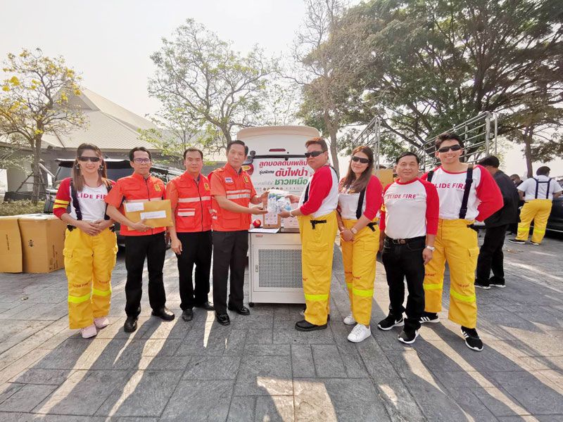 2 เม.ย.62 ที่ จ.เชียงใหม่ นายภณวัชร์นันท์ ไกรมาตย์ นักประดิษฐ์ลูกบอลดับเพลิง และนายกสมาคมนักประดิษฐ์และนวัตกรรมแห่งประเทศไทย พร้อมทีมงานบริษัท อิไลด์ ไฟร์บอล โปร จำกัด ออกคาราวาน เพื่อนำผลิตภัณฑ์ ‘ลูกบอลดับเพลิง’ พิเศษ รุ่นขนาด 400 กรัม 150 ลูก และ ขนาด 1.3 กรัม 150 ลูก พร้อมทีมปฏิบัติการดับไฟป่า เพื่อช่วยเหลือชาว จ.เชียงใหม่ ที่กำลังประสบปัญหาจากสภาพอากาศที่ยังมีฝุ่นควันที่เป็นพิษ ซึ่งเป็นอันตรายต่อสุขภาพ และระบบทางเดินหายใจของพี่น้องประชาชน