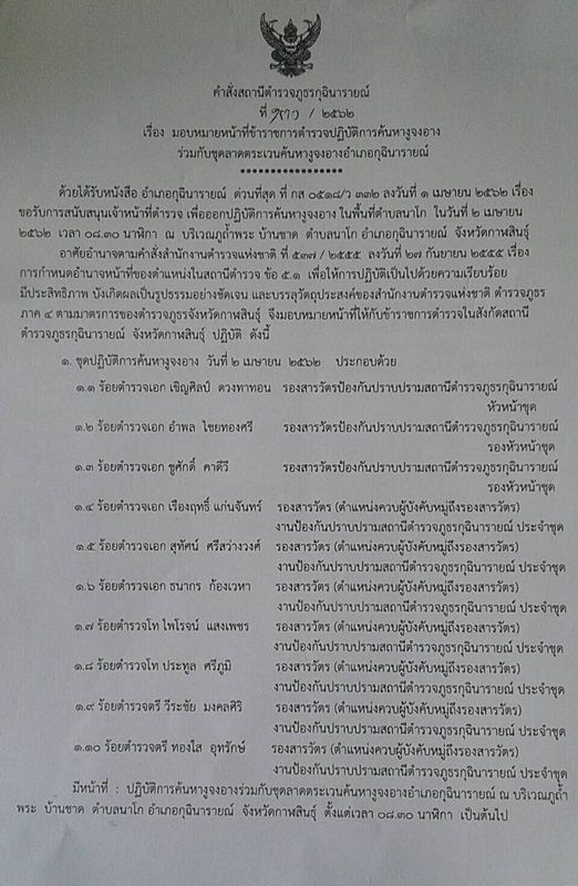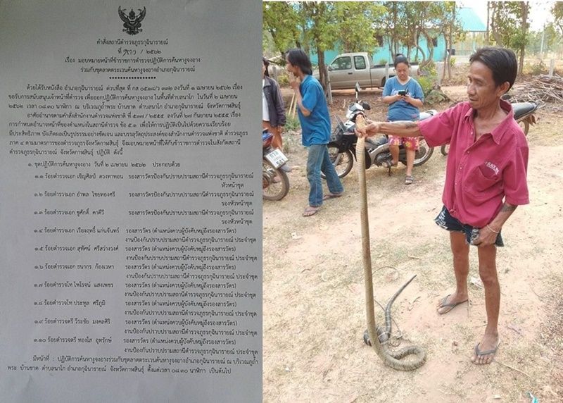 ขณะที่ล่าสุดวันนี้ (2 เม.ย.62) ทางสถานีตำรวจภูธร (สภ.) กุฉินารายณ์ ได้มอบหน้าที่ข้าราชการตำรวจลงไปปฏิบัติการค้นหางูจงอางร่วมกับชุดลาดตระเวนค้นหางูจงอางอำเภอกุฉินารายณ์ ณ บริเวณภูถ้ำพระ บ้านชาด ตำบลโก อำเภอกุฉินารายณ์ จังหวัดกาฬสินธุ์ ตั้งแต่เวลา 08.30 น.เป็นต้นไป หลังจากได้มีคำสั่งด่วนที่สุดที่ กส 0518/ว 332 ลงวันที่ 1 เมษายน 2562 ขอรับการสนับสนุนกำลังเจ้าหน้าที่ตำรวจเพื่อออกปฏิบัติการค้นหางูจงอางในวันที่ 2 เมษายนนี้ โดยมีเจ้าหน้าที่ตำรวจร่วมลงปฏิบัติการระดับรองสารวัตรทั้งหมด 10 นาย (ตามเอกสารคำสั่ง)