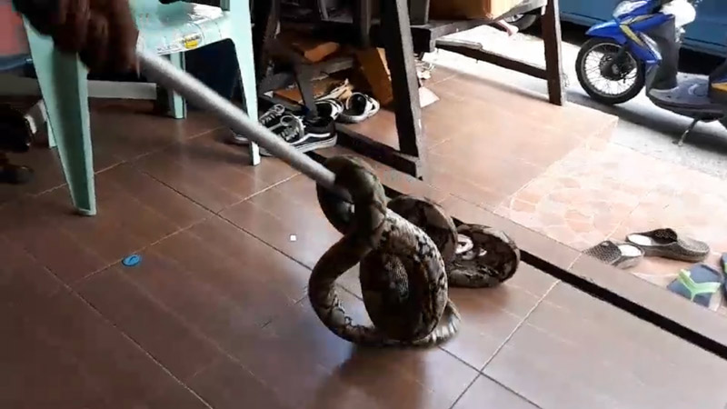 จากการสอบถามนางชัญญา โสภาจารีย์ อายุ 56 ปี เจ้าของบ้าน เล่านาทีระทึกว่า ตนกำลังจะเปิดร้านและได้ขึ้นไปบนชั้นสอง และได้ยินเสียงเพื่อนบ้านตะโกนบอกว่ามีงูเหลือมตัวใหญ่เลื้อยเข้าไปในบ้าน จึงรีบลงมาดูและสังเกตเห็นแมว 3 ตัวที่ตนเลี้ยงไว้ 3 ตัว วิ่งสวนขึ้นมาบนบันได และพบว่างูเหลือมได้เข้าไปขดตัวอยู่ที่หลังบ้าน จึงให้เพื่อนบ้านแจ้งเจ้าหน้าที่กู้ภัยมาจับงูออกไป