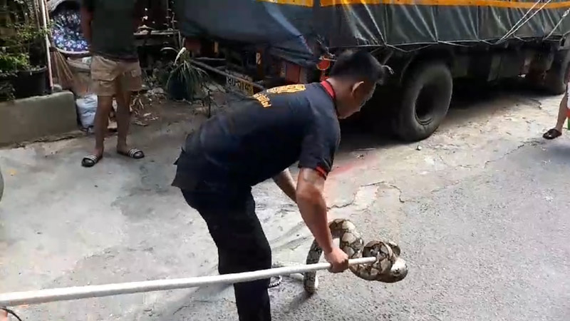 ทางด้านเจ้าหน้าที่บรรเทาสาธารณะภัยเทศบาลเมืองบางบัวทอง กล่าวว่า ก่อนหน้านี้งูได้กินไก่ของชาวบ้านในละเเวกใกล้เคียงไปเข้าไป จึงทำให้ไม่สามารถเคลื่อนไหวไปไหนได้ จึงนอนขดตัวอยู่ในจุดที่เจ้าของบ้านมาพบ ถือว่าโชคดีไม่มีใครได้รับอันตราย จากนั้นจะนำงูกลับไปปล่อยคืนสู่ธรรมชาติ ต่อไป